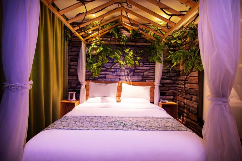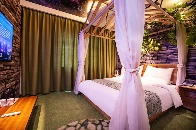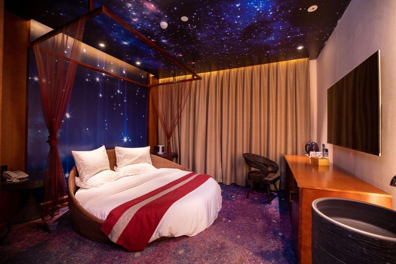 千百度主题酒店(郑州花园路店)以时尚、炫丽为主题,采用异国风情设计风格,色彩与空间的合理搭配更能彰显情侣间唯美的浪漫情怀,是一所别具一格的时尚情侣主题连锁酒店。 酒店房型设计风格多样化,其中有激情四射的烈火之恋,唯美温馨的海景房,充满异域格调的地中海风情,每一种设计元素均被赋予空间、时尚、多彩的爱情浓意,彻底颠覆了传统酒店设计风格一体化所造成的审美疲劳,抛开千篇一律的奢华与单调,让您尽享甜美爱情,体验奢华尊贵。