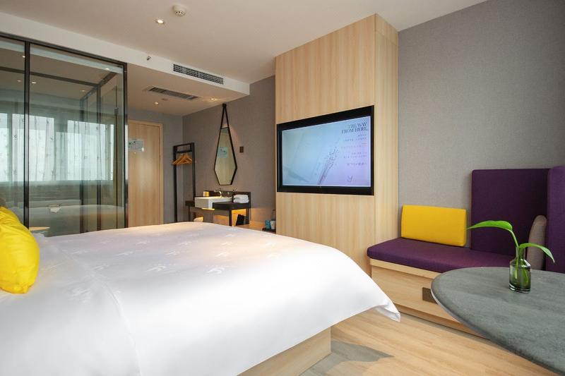 酒店位于京广路与永安街交汇处西北角(京广路44号),近铁路局,步行5分钟即到;紧邻永安街夜市美食聚集地。酒店位于二七商业聚集地,交通便利、购物方便,各类特色美食品种繁多。 酒店是晗月酒店集团旗下中端简约品牌。设计风格时尚、潮玩,色彩丰富,符合“Y一代”独特审美情趣。风格茶饮吧、炫酷K歌、潮流VR游戏、动感单车等,汇集于复古又时髦的多功能大堂;造型独特客房空间,以几何元素切分功能板块,既舒适又极具现代美感。Y品牌融合了互联网原住民消费新观念,是一家复合型潮牌酒店。