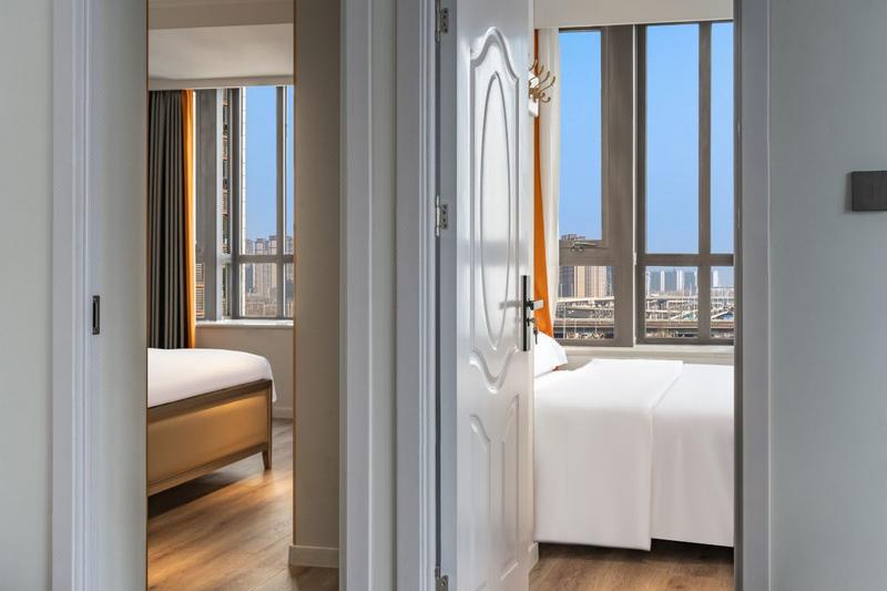 酒店位于郑州市郑东新区核心地带,紧邻郑州国际会展中心、郑东商业广场 、高端会所/酒吧。眺望郑州地标“玉米塔”,比邻高铁站,畅达城市枝末。酒店是智能服务式公寓,以“定制服务”为宗旨,致力于为社会精英人士打造温暖的“商旅之家”。 酒店室内空间由法国独立设计师团队设计,法式轻奢风格;浪漫的同时更注入了新型酒店元素。设施甄选国际品牌,铸就温馨居所。这里有24h房间管家服务,并配备设施齐全的厨房、起居室、会客室及娱乐室,提供一系列品牌的特色设施,为商务及休闲宾客在这个充满活力的城市里提供“精致、智能、舒适”的旅途生活。精品设施缔造卓越生活,定制服务塑造美好体验,让宾客悦享“精致、智能、舒适”的商旅家生活。无论您经历了什么,天黑了,让酒店带您回。