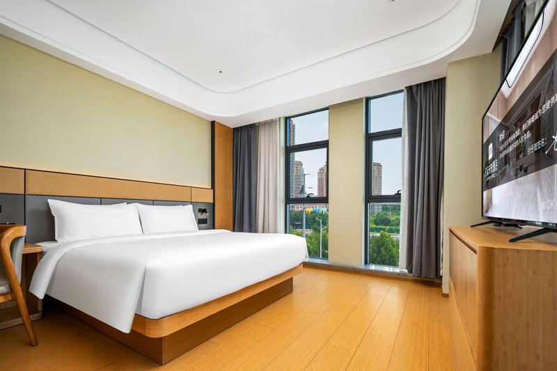 酒店是郑州娱播未来酒店旗下高端全智能型特色酒店,酒店位于郑州市秦岭路与洛河路交叉口向西50米,酒店与中原区万达广场仅有一路之隔,同时为西元广场商圈,锦艺城商圈,是女生购物的天堂,临近汽车客运西站及地铁五号线交通便利,南临陇海快速路,出行更是畅通无阻。 酒店拥有各类客房,为了能展现出人与科技的完美融合,所有房间均采用先进的智能化黑科技“人脸识别”入户、语音客控、智能卫浴、恒温晾衣杆,让生活变得简约方便;高端酒店标准的床垫及超柔软舒适的床上用品、干净放心的一次性客用品,将旅途中的舟车劳顿抛诸脑后;丰富多样的早餐给您带了一整天的美好体验;同时店内设有独立会议室、茶艺室、健身房、洗衣房,满足您出行需求,让您体验另一种舒适的生活方式!