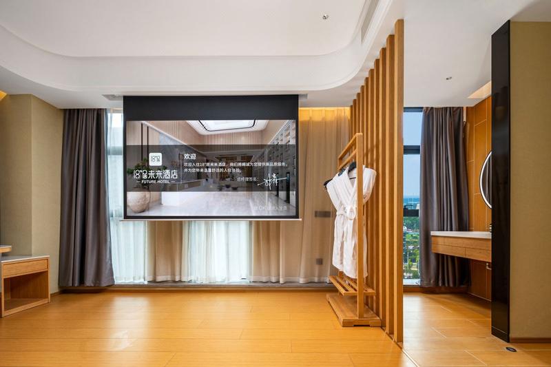 酒店是郑州娱播未来酒店旗下高端全智能型特色酒店,酒店位于郑州市秦岭路与洛河路交叉口向西50米,酒店与中原区万达广场仅有一路之隔,同时为西元广场商圈,锦艺城商圈,是女生购物的天堂,临近汽车客运西站及地铁五号线交通便利,南临陇海快速路,出行更是畅通无阻。 酒店拥有各类客房,为了能展现出人与科技的完美融合,所有房间均采用先进的智能化黑科技“人脸识别”入户、语音客控、智能卫浴、恒温晾衣杆,让生活变得简约方便;高端酒店标准的床垫及超柔软舒适的床上用品、干净放心的一次性客用品,将旅途中的舟车劳顿抛诸脑后;丰富多样的早餐给您带了一整天的美好体验;同时店内设有独立会议室、茶艺室、健身房、洗衣房,满足您出行需求,让您体验另一种舒适的生活方式!
