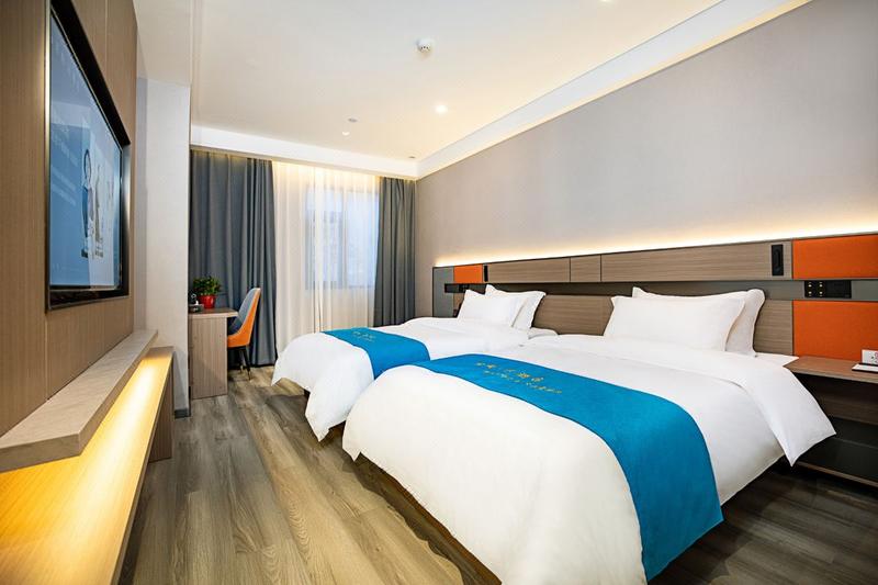 酒店位于郑州二七区南四环大学南路西南角鑫苑都汇广场3号门,毗邻百荣世贸商业区,周边有世纪联华、二七万达,紧邻地铁2号线,距离机场约45分钟车程,高铁站约35分钟车程,郑州火车站约18分钟车程,优越的地理位置,便利的交通是您商务旅游休闲住宿的理想选择。 酒店是一家高端舒适酒店,房间高端酒店布草、零压床垫、中央空调、网络电视、24小时热水、WIFI覆盖一应俱全,房间布草一客一换,并备有洗发液、沐浴液、护发素、让您沐浴,牙刷、梳子、均为一次性用品,保证顾客健康卫生。并为女士顾客备有浴帽,让您出行无忧,酒店装修别具风格,为您提供24小时管家式服务,一楼商场,二楼KTV、电影院,四楼桌球厅,经过一座城,寻觅一间房,我们将以热情的服务,舒适的房间,期待您的到来!!