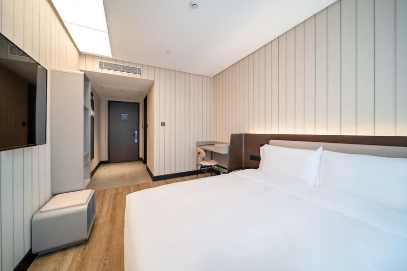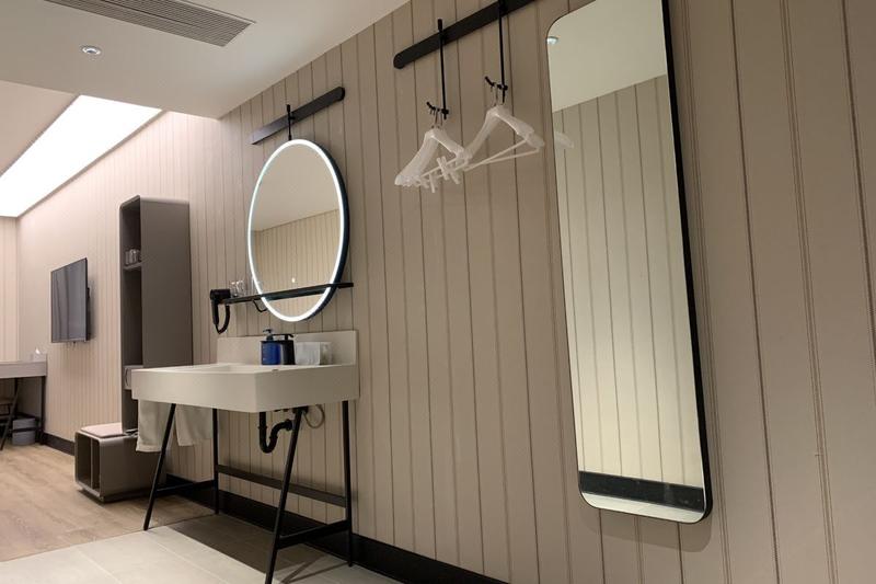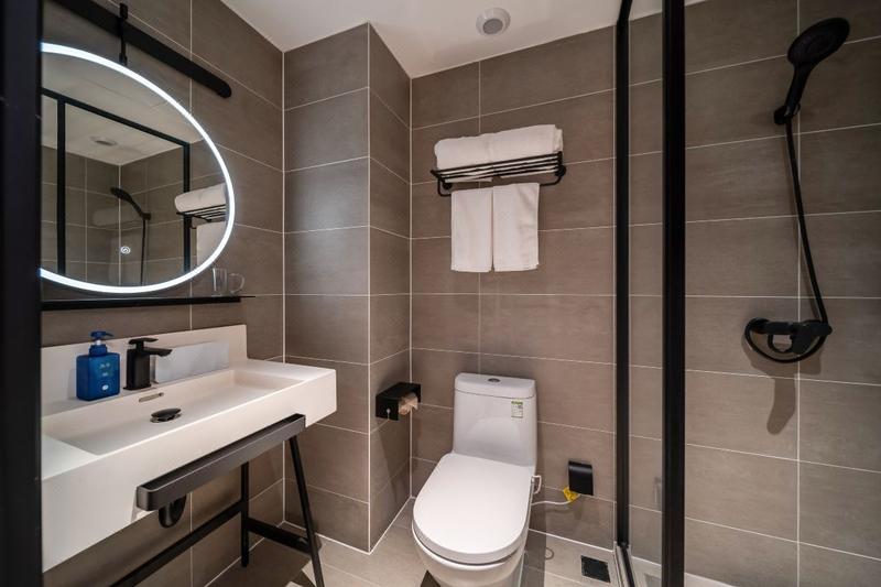 汉庭3.5旗舰店引入了意大利原装进口家具、客房智能语音系统、兼具无线充电的床头柜等亮点。整个公区采用莫兰迪配色,拼接色彩丰富却看起来和谐舒适。大堂圆弧式的全景设计,干净利落的线条,让整个大堂美而不累赘。我们由衷的希望,用品质出行丰富你生活的骨感,让你即使在路上,也能品味生活的美好,远离疲惫喧嚣,汉庭新品3.5,期待您的光临!