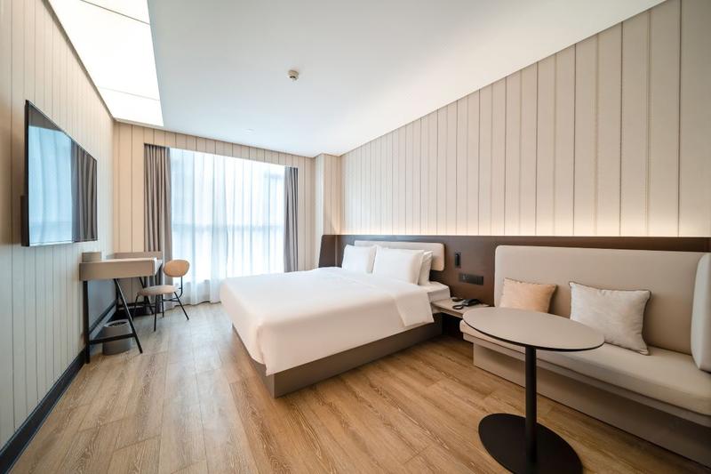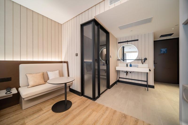 汉庭3.5旗舰店引入了意大利原装进口家具、客房智能语音系统、兼具无线充电的床头柜等亮点。整个公区采用莫兰迪配色,拼接色彩丰富却看起来和谐舒适。大堂圆弧式的全景设计,干净利落的线条,让整个大堂美而不累赘。我们由衷的希望,用品质出行丰富你生活的骨感,让你即使在路上,也能品味生活的美好,远离疲惫喧嚣,汉庭新品3.5,期待您的光临!