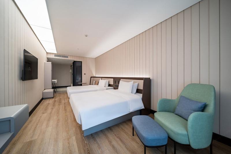 汉庭3.5旗舰店引入了意大利原装进口家具、客房智能语音系统、兼具无线充电的床头柜等亮点。整个公区采用莫兰迪配色,拼接色彩丰富却看起来和谐舒适。大堂圆弧式的全景设计,干净利落的线条,让整个大堂美而不累赘。我们由衷的希望,用品质出行丰富你生活的骨感,让你即使在路上,也能品味生活的美好,远离疲惫喧嚣,汉庭新品3.5,期待您的光临!