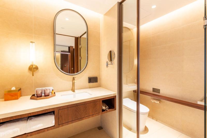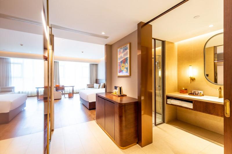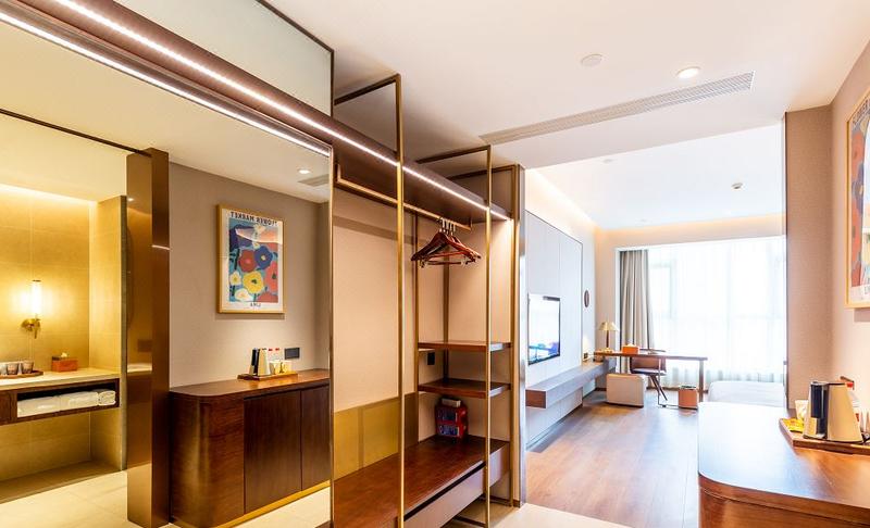 汉庭3.5旗舰店引入了意大利原装进口家具、客房智能语音系统、兼具无线充电的床头柜等亮点。整个公区采用莫兰迪配色,拼接色彩丰富却看起来和谐舒适。大堂圆弧式的全景设计,干净利落的线条,让整个大堂美而不累赘。我们由衷的希望,用品质出行丰富你生活的骨感,让你即使在路上,也能品味生活的美好,远离疲惫喧嚣,汉庭新品3.5,期待您的光临!