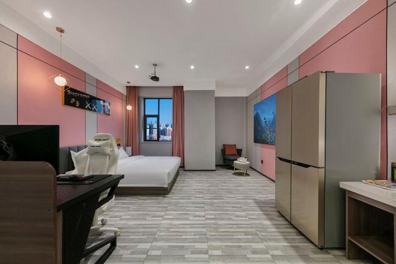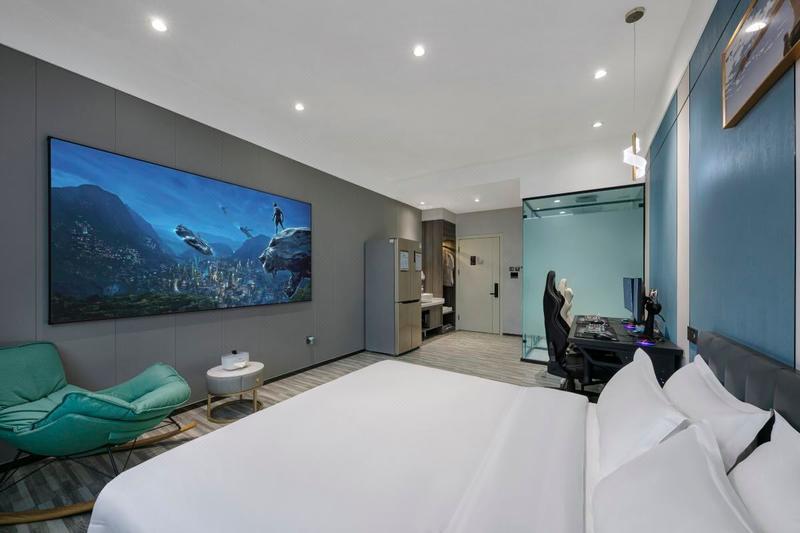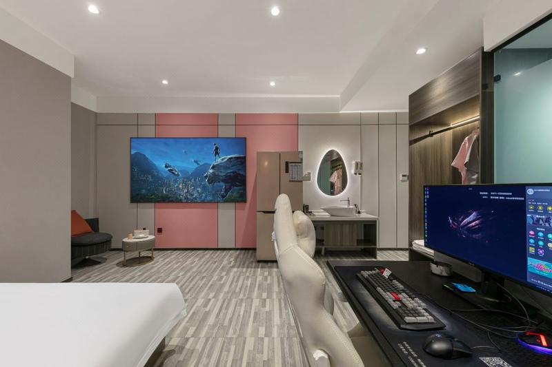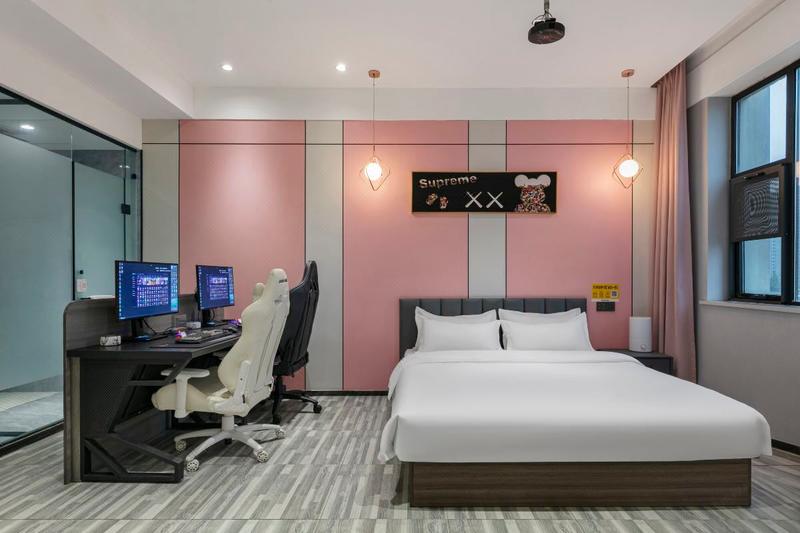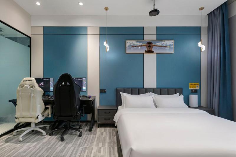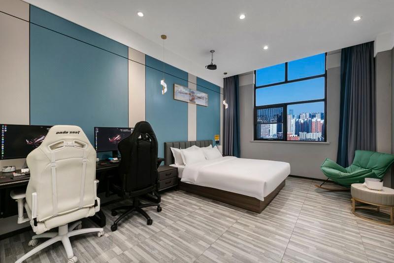 酒店是电竞酒店中的一匹黑马,全系采用酷睿i9处理器、ROG系列显卡、2K165hz显示器!是一家集高端电竞、品质服务、休闲娱乐、聚会轰趴于一体的多元化酒店。所有客房均拥有“小步”智能一体化客控系统,简单口令操控窗帘、灯光、中央空调、投影等电子设备。酒店采用新一代AI智能机器人,为您提供更优质的送餐、送物、取快递、迎宾接待等服务。部分房间带有乔氏台球、VR体感游戏、大型街机等多种设施。这里有豪华双床、云端大床、三人、四人、五人、六人、轰趴套房等多种选择。这是一家高配置、高颜值、高规格的“三高”酒店。酒店提供迎宾小食、咖啡糖、贝德玛卸妆、女士护肤、睡眠眼贴、暖宝宝、自助洗衣、停车等多项服务。本店是您聚会娱乐的理想选择!我们致力为每一位客人提供更好的入住体验。