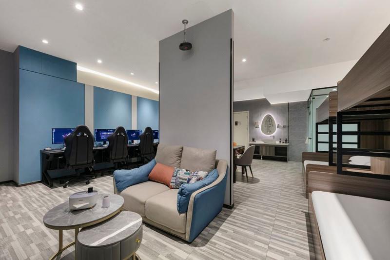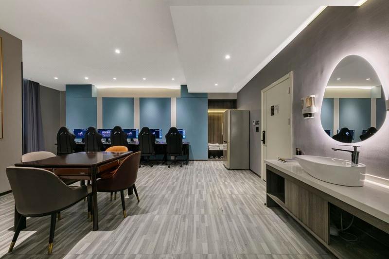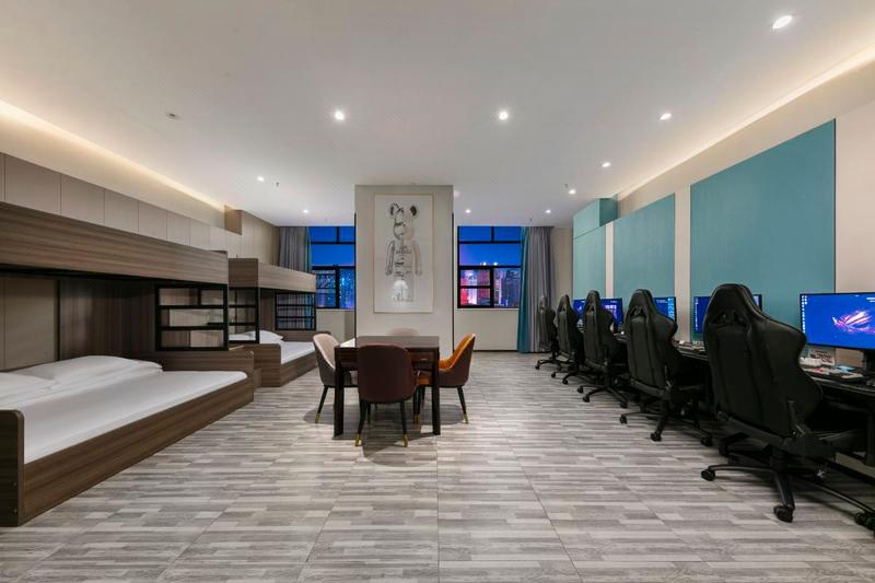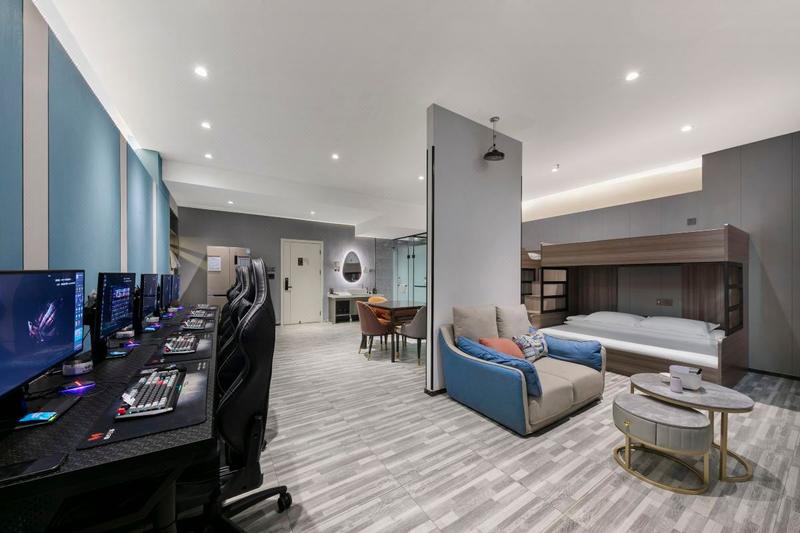 酒店是电竞酒店中的一匹黑马,全系采用酷睿i9处理器、ROG系列显卡、2K165hz显示器!是一家集高端电竞、品质服务、休闲娱乐、聚会轰趴于一体的多元化酒店。所有客房均拥有“小步”智能一体化客控系统,简单口令操控窗帘、灯光、中央空调、投影等电子设备。酒店采用新一代AI智能机器人,为您提供更优质的送餐、送物、取快递、迎宾接待等服务。部分房间带有乔氏台球、VR体感游戏、大型街机等多种设施。这里有豪华双床、云端大床、三人、四人、五人、六人、轰趴套房等多种选择。这是一家高配置、高颜值、高规格的“三高”酒店。酒店提供迎宾小食、咖啡糖、贝德玛卸妆、女士护肤、睡眠眼贴、暖宝宝、自助洗衣、停车等多项服务。本店是您聚会娱乐的理想选择!我们致力为每一位客人提供更好的入住体验。