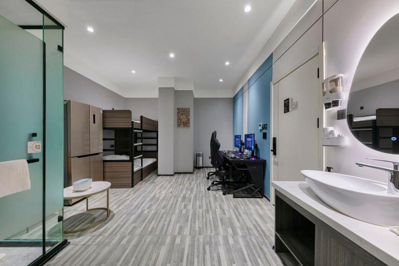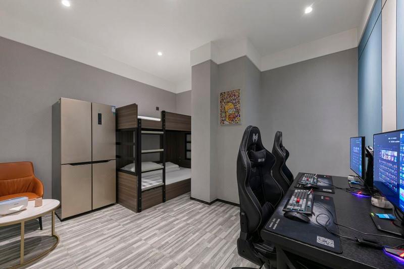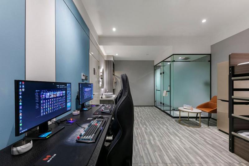 酒店是电竞酒店中的一匹黑马,全系采用酷睿i9处理器、ROG系列显卡、2K165hz显示器!是一家集高端电竞、品质服务、休闲娱乐、聚会轰趴于一体的多元化酒店。所有客房均拥有“小步”智能一体化客控系统,简单口令操控窗帘、灯光、中央空调、投影等电子设备。酒店采用新一代AI智能机器人,为您提供更优质的送餐、送物、取快递、迎宾接待等服务。部分房间带有乔氏台球、VR体感游戏、大型街机等多种设施。这里有豪华双床、云端大床、三人、四人、五人、六人、轰趴套房等多种选择。这是一家高配置、高颜值、高规格的“三高”酒店。酒店提供迎宾小食、咖啡糖、贝德玛卸妆、女士护肤、睡眠眼贴、暖宝宝、自助洗衣、停车等多项服务。本店是您聚会娱乐的理想选择!我们致力为每一位客人提供更好的入住体验。