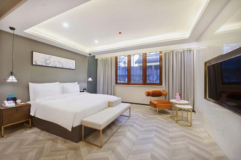 开封茉舍·半亩花田酒店位于开封清明上河园南侧建业东半亩园,龙亭、天波杨府、翰林碑园、万岁山步行可达,附近有邢家锅贴开封百年老店,更有小宋城、西司夜市、鼓楼城市的丰富小吃美食。 酒店延续传统园林建筑特点,将空间趣味性融入到室内空间,通过人们在行走中获取趣味,希望每一个空间不但有不断精细的体验,更有所有体验者关于精致生活的文化价值,风格上将人们所欣赏的玲珑清雅与今人所追求的时尚品质灵活相容,在不经意中延续这座城市的文脉是酒店想呈现的。 酒店客房配备智能马桶、鹅绒被、鹅绒枕、千兆网速互联网、带给您非凡的入住体验。
