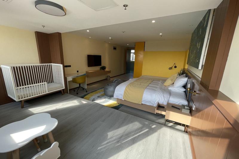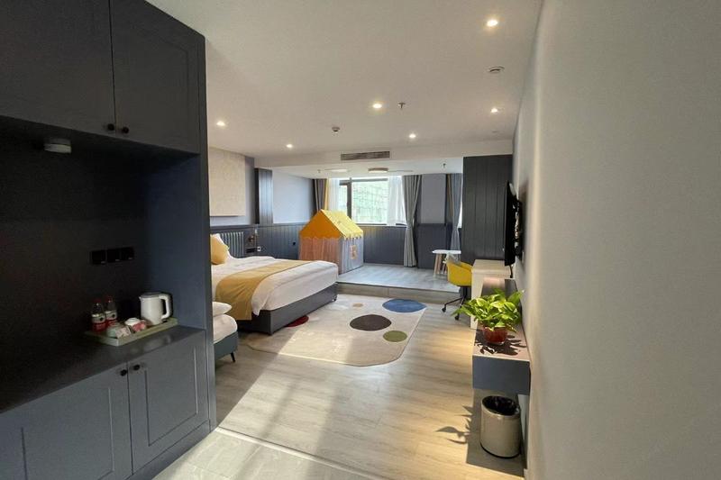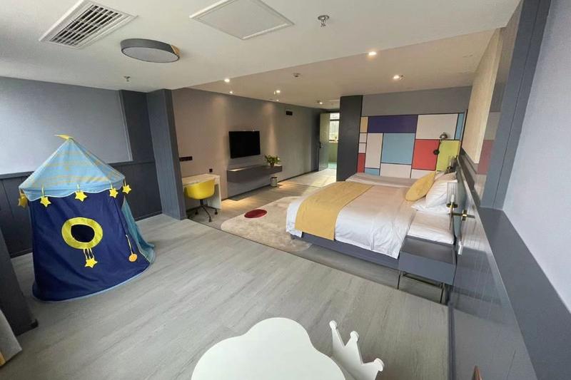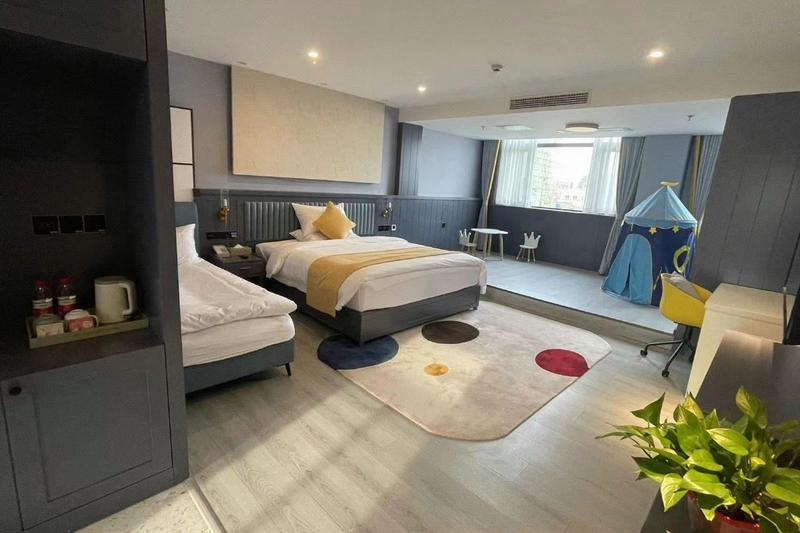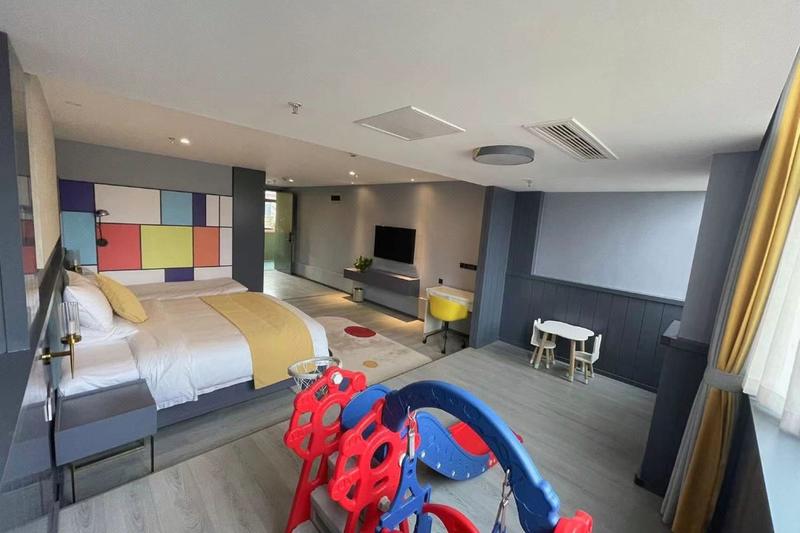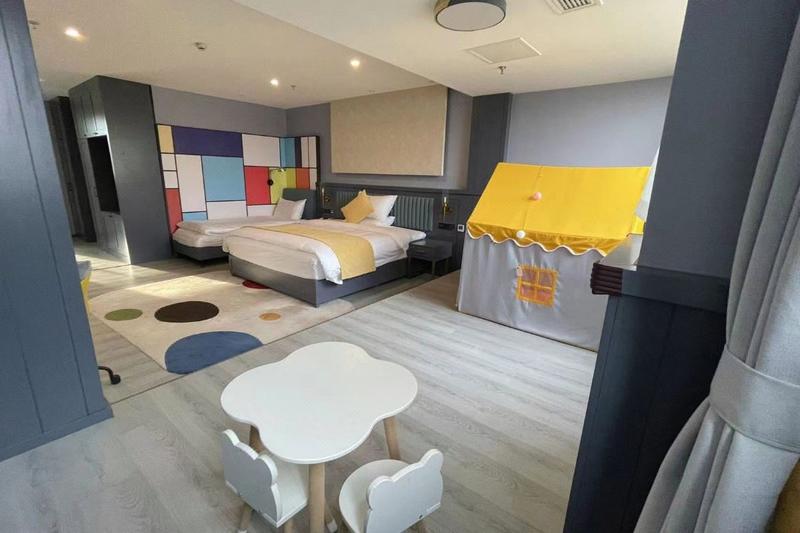 龙嬉亲子酒店坐落在双龙巷历史文化街区内,双龙巷因北宋皇帝赵匡胤、赵匡义两朝皇帝曾在此居住过而得名,此街区文化底蕴深厚,教育资源优越,而龙嬉酒店的前身则是1950年建园的河南省开封市实验幼儿园,是开封市省级幼儿园,幼儿园成就了众多成功人士,可谓是教育的风水宝地! 龙嬉酒店主体大楼标志是“1920”,为何命名为1920呢?因1920年,美籍修女盖夏嬷嬷初次抵华传教,并开始她的教育生涯,于1932年在双龙巷街区内创办了静宜女中,由于教育的引入1950年河南省开封市实验幼儿园也入驻了双龙巷,幼儿园搬迁后留下的整体校园,重建后成为现在的龙嬉亲子酒店,再次走进有儿时记忆的幼儿园,留宿龙嬉亲子酒店,是否能r让您重温儿时的记忆呢,回味美好的童年? 酒店占地面积3549㎡,是集餐饮、住宿、娱乐为一体的亲子主题酒店,满足不同年龄,不同性别的大朋友、小朋友需求。 酒店室内大堂区域有3.8米高旋转滑梯,二楼大厅整个休闲游乐区,室外采摘区,沙坑区,游戏区、野营区等各种游乐活动区为孩子提供了丰富的娱乐设备和超大娱乐空间,满足了孩子级家长安全、舒适、趣味和互动的入住体验。
