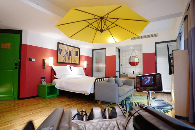 酒店建筑面积约4000平方米,共计80余间客房,喜鹊在打造城市高端酒店的同时,迎合消费升级,数字化智能化与酒店结合,将喜鹊愉家金明广场店打造成全智能化酒店,无房卡入住、家电语音控制、智能化马桶以及根据人体工程学原理设计的具有释压功能的零压床垫,没有什么比一次良好的睡眠体验驱赶走一天的疲倦更让人心旷神怡,我们相信,神闲安定,便是选一处悦人的住所。