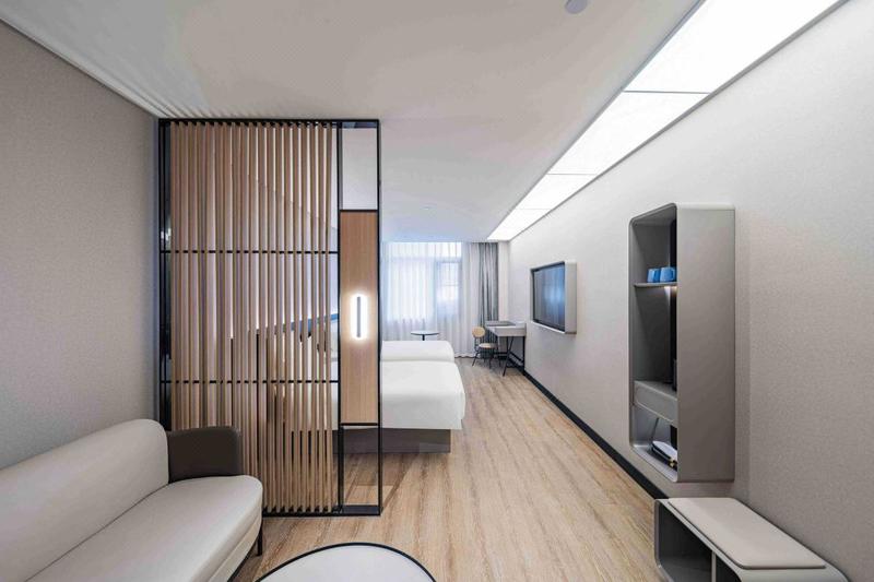 本酒店位于开封市东京大道鼎立.国际城H区H-1区项目20号商务楼。 我们有着自己的美学原则,新升级,崭新力作,以低饱和的舒适配色及柔美利落的线条,诠释“实用主义”的美学理念,智能高科技设备,打造30s入住,机器人送物、24hr洗衣,图书借阅等6大自助体验。摊点式早餐呈现国民本味,明档面点暖心暖胃;客用品、家具舒适度再升级,符合人体工学的同时注入科技理念。 为客人带来"住得起的好品质,看得到的好设计”