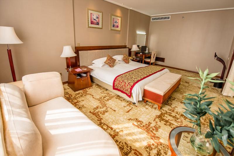 宾馆位于涧西区万达与环牡丹广场两大商圈内,毗邻中国第二大地铁站牡丹广场站;通过地铁1、3号线牡丹广场站E出口可直达酒店大堂;距王城公园约2.5公里、隋唐城遗址公园约6.4公里。 宾馆内部与周边设施齐全,与万达广场、南昌路王府井商圈、广州市场商圈、西苑公园、牡丹公园近在咫尺,与洛浦公园遥相呼应。酒店门前地铁1号线串联全国重点文物保护单位——隋唐洛阳城遗址与金元古城等著名景点。 宾馆建筑风格端庄典雅,主楼共24层,内设多种房型客房共计三百余间(套),房内配设齐全。 圣保罗西餐厅主营异域格调的巴西烤肉;皇朝食府中餐厅以融合菜为基调,辅以洛阳特色佳肴打造高端饮食文化。顶层法式餐厅以法式大餐为主题,让宾客在法式的浪漫中寻找欧洲中世纪的情调;四个大小不一的现代化会议室可同时容纳400人进行会议、展示等活动,满足宾客对各类会议的服务需求。 洛阳友谊宾馆以亲情化服务为宗旨,为宾客提供一流的住宿、餐饮服务,同时赠予每位宾客温馨的享受及美好的回忆。