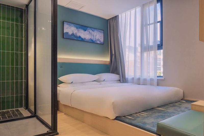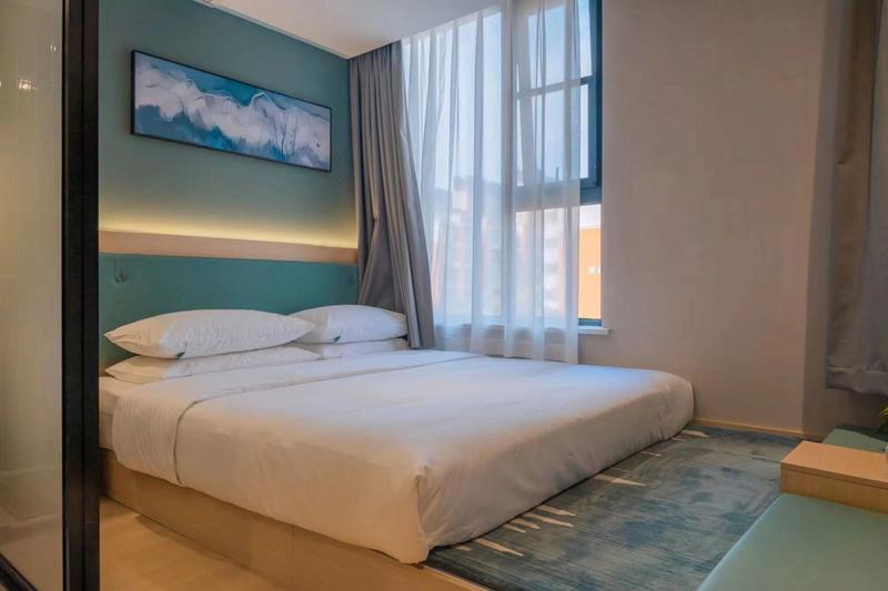 酒店装修风格现代简约,时尚,拥有各类型房间,房间配备客房设备,干湿分离卫生间,每间房都有落地窗户,采光通风非常好!现代简约,家具装修风格,时尚舒适的大床,能让您家一样温馨的感觉。拥有专业的服务团队,酒店完善每一个服务细节,管家一站式服务,我们不只做酒店,我们更懂您!
