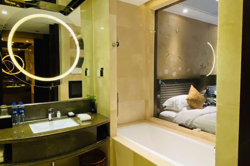 平顶山蕴海锦园大酒店位于新城区长安大道,南面直临平西湖,东临生态园,与平顶山政府临街而望。 这是一家集湖景、园林为一体的高星级生态园林酒店,占地面积10万平方米,建筑面积4万平方米,由五栋独立的建筑组成,拥有各类豪华商务客房两百余间(套)。 酒店更有尊贵典雅中餐厅、时尚的西餐厅;极尽舒适的蕴·中医养生SPA馆;设施完备的康体中心、商务中心、功能先进、齐全的国际会议中心、室内泳池、娱乐KTV等为客人提供不同凡响的消费体验;酒店正门前的停车场有160个车位,为宾客提供停车服务。 秀美的平西湖与酒店的园林风景、建筑群相互辉映,园内各种树木灌木棕榈数不胜数,其中不乏有名贵的青檀、黄檀、银杏树、黄连树、火鸡树、栾树等,还有柿子、木瓜、樱桃、山楂、石榴、杏等品种的果树。且有含笑、紫藤、桂花、紫玉兰、百日红、海棠等品种的花。酒店持续园区绿化,营造出高质量的生态环境,让宾客欣赏美丽风景的同时呼吸清新的空气。 酒店秉承满意+回忆的亲情服务理念,以宾客的需求为核心。这里是您旅游、商务、休闲、康体、娱乐、吸氧上佳之所。