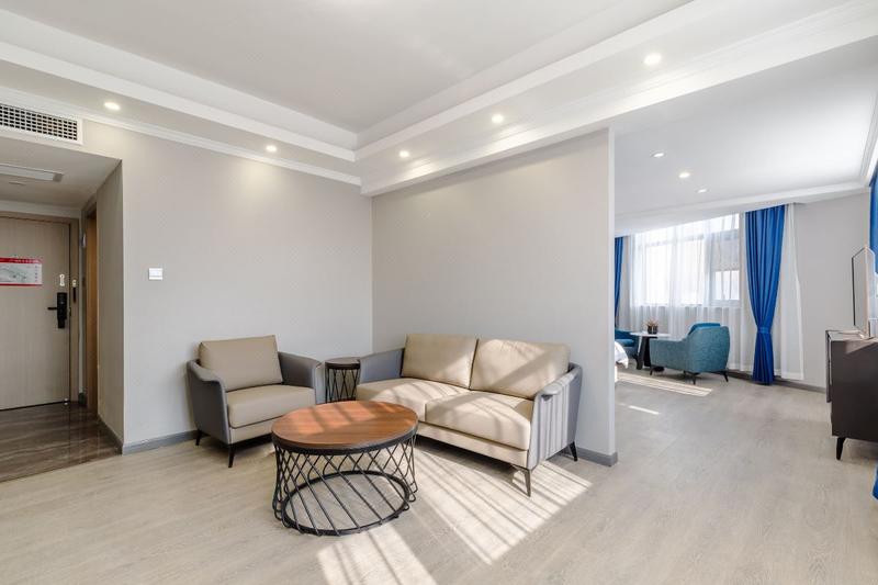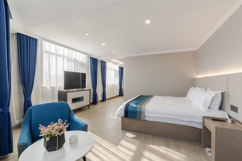 酒店的设计属于轻奢现代城市风,优雅、清雅,及商务休闲等元素融入到室内空间,空间中采用自然环保的室内软装,个性化的地域文化氛围,房间的布局上充分体现了现代实用主义,秉承“本质,自由,天然”的设计理念,本酒店提供高速网络,中西式安心自助早餐,为您提供舒适宁静的旅途休息和思考环境,为都市里不安分的灵魂提供栖息之所和社交空间。酒店东临市内商业区,西达新城区行政区及高铁站,地理位置优越交通方便。祝您旅途愉快!