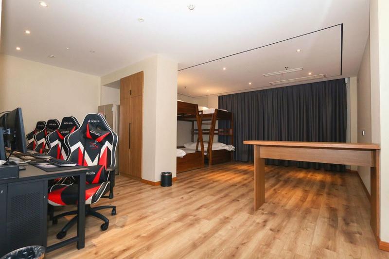 酒店是河南艾电竞酒店管理有限公司旗下集高端电竞、品质服务、休闲娱乐为一体的专业电子竞技酒店。酒店位于河南省平顶山市新华区建设路与凌云路口向西20米路北。新颖时尚的设计风格恰到好处的阐释了高端酒店与电子竞技的理想结合。酒店拥有舒适客房,二到六人间房型均可满足电竞宾客的各种喜好,且配备当下时尚前沿的专业电竞设备以及大尺寸投影幕布。酒店大堂吧提供各类酒水饮料,琳琅满目,让您在竞技中体验开怀畅饮的快感,无论是举行朋友聚会还是私人派对,酒店皆为优选。