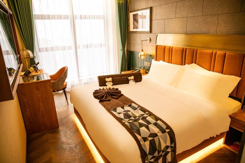 喆啡酒店(安阳万达碧桂园店)是锦江集团在河南的喆啡3.0项目,全新强化的复古格调和升级的产品,所有房间均是落地大玻璃窗,高入云端的风景,俯览安阳夜景,装有霍尼韦尔新风系统,让您感受大自然的清新、紧邻繁华的中轴线,交通便利,服务方便。酒店拥有各类客房,并配备了超大屏幕液晶数字电视、无限WiFi、咖啡吧(埃塞俄比亚咖啡 豆)、打卡书吧、火炉、自助早餐厅。倾听心底的声音,找到自我的归属感,享受到“旅 途中的啡凡存在”,我们在这里等您!喆啡酒店(Jomes Joyce Goffelel)是咖啡馆文化和酒店完美融合的跨界品牌,由锦江酒店集团引领市场,创造出全新的酒店品类,带领商旅人士体验舒适感、品味个性、享受服务。