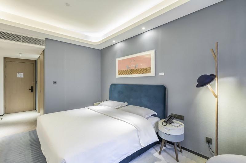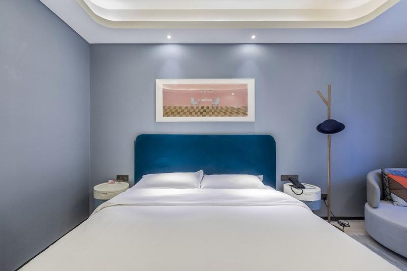 新乡艺悦酒店是宝龙酒店集团推出的艺术主题连锁酒店,酒店以文化艺术为品牌核心价值,倡导“品味艺术、悦享生活”的服务理念,地处新乡市政治文化中心,紧靠新乡宝龙城市文化广场,比邻新乡博物馆、新乡高铁站等,周边配套设施一应俱全,交通便利。酒店总面积8437.9㎡,共10层,整体设计以新乡市花“石榴花”这一文化符号出发,通过趣味横生的创意风格和大胆浪漫的色彩搭配进行艺术化演绎。共设有165间(套)艺术客房,整体精致考究,舒适惬意,采用多圆弧造型结构设计,运用象征温柔优雅的复古蓝色,搭配精心甄选的全球新锐艺术家画作,呈现简约时尚的家居装饰风格,营造轻松、自然且充满趣味性和艺术感的美妙休养空间,可满足宾客商务和休闲居住的不同需求。同时配备3个多功能会议厅,以线型灯槽营造前卫时尚感,满足多元化的会议需求;并设有不同艺术风格主题包厢的味美中餐厅及时尚雅致、极尽现代简约之感的全日制餐厅,让宾客在浓厚的艺术氛围中畅享美味。酒店还邀请国内外知名艺术家驻地创作,并定期举办主题艺术展览,让宾客零距离与艺术家交流,营造集艺术画廊、艺术欣赏、艺术交流为一体的全新“酒店”+“艺术”的休闲体验空间。