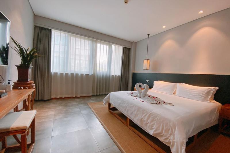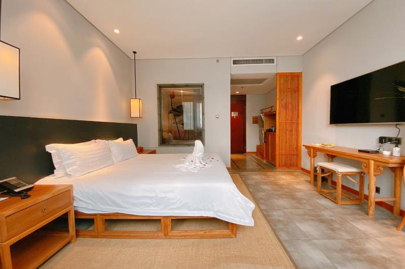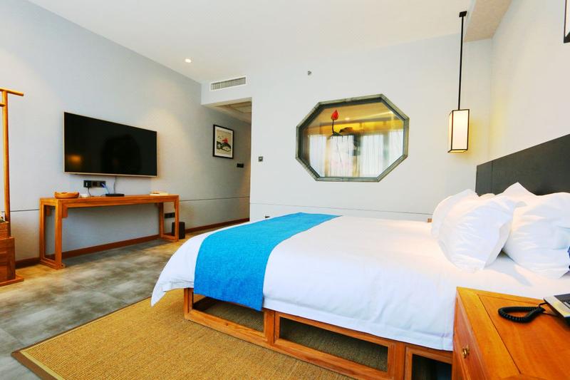 酒店位于河南省新乡市,周围交通便利,生活配套齐全,外出购物、就餐方便,让您尽享新乡的“慢生活”。酒店采用新乡市智慧客房系统,通过数字化与网络化实现酒店数字信息化服务技术。设计将传统与现代,人文与自然融合,创造出具有独特东方文化魅力的审美情趣,打造集客房、茶餐、养生、会议于一体的园林式文化酒店,五十余间新中式豪华房套房布局独特,设施齐全,每一个细节都彰显者格调与舒适。 【交通】 距新乡市客运汽车站:开车约20分钟(公交39路,约38分钟;公交7路,约49分钟等) 距新乡火车站:开车约20分钟(公交39路,约41分钟;公交48路,约51分钟等) 距新乡高铁站:开车约23分钟(公交9路,53分钟;公交191路,1小时等) 距新乡东站:开车约7分钟(公交801路,约23分钟;公交25路,26分钟;公交23路,27分钟等) 距新乡市人民政府:开车约17分钟(公交22路,约44分钟;公交192,39分钟等) 【酒店周边】 景点:启明社区文化广场、秋冬社区文化广场、乐水公园、以及新乡市人民公园等多个公园广场活动点。 美食:彭厨、57小龙虾、新乡老字号葛记红焖羊肉以及新乡融味餐厅等多种美食商家。 【酒店设施】 酒店内设有中餐厅、茶室等多套配套设施,集商务、旅游、度假休闲为一体。为顾客提供24小时前台、免费行李寄存、管家服务以及叫醒服务。 酒店设备配套完善,房间采用多芬高品质的浴室洗护用品、卫生间配备智能恒温马桶、高品质的神宝床垫配备锐斯床上用品、以及房间内所有设备均为声控操作;公共区域配有前台贵重物品保险柜、投影设备、茶室、熨烫服务以及高速无线网络全覆盖等; 酒店设有专门的功能区——雅韵知音,在这里来自四海的宾朋可以交流学术、品鉴茶艺,也可以举办读书会等各类沙龙;无论是去亲水露台品茗畅谈还是到禅心书院静心养性,亦或是伴着花香徜徉花海,酒店都是您不二的选择。 【特色服务】 酒店园林可提供中式婚礼拍照场地、汉服拍照场地、网红打卡房间以及婚房等多种特色服务及房间,园内设有可容纳200-300人的户外婚礼大草坪供顾客使用。