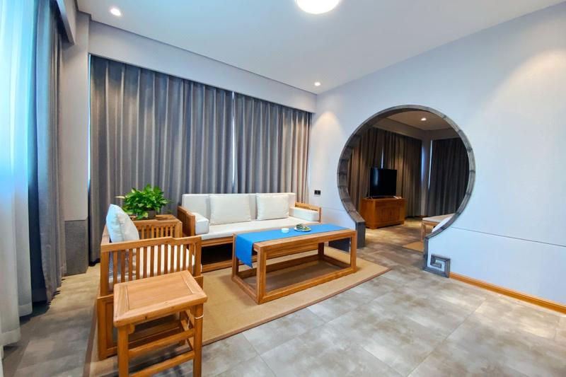 酒店位于河南省新乡市,周围交通便利,生活配套齐全,外出购物、就餐方便,让您尽享新乡的“慢生活”。酒店采用新乡市智慧客房系统,通过数字化与网络化实现酒店数字信息化服务技术。设计将传统与现代,人文与自然融合,创造出具有独特东方文化魅力的审美情趣,打造集客房、茶餐、养生、会议于一体的园林式文化酒店,五十余间新中式豪华房套房布局独特,设施齐全,每一个细节都彰显者格调与舒适。 【交通】 距新乡市客运汽车站:开车约20分钟(公交39路,约38分钟;公交7路,约49分钟等) 距新乡火车站:开车约20分钟(公交39路,约41分钟;公交48路,约51分钟等) 距新乡高铁站:开车约23分钟(公交9路,53分钟;公交191路,1小时等) 距新乡东站:开车约7分钟(公交801路,约23分钟;公交25路,26分钟;公交23路,27分钟等) 距新乡市人民政府:开车约17分钟(公交22路,约44分钟;公交192,39分钟等) 【酒店周边】 景点:启明社区文化广场、秋冬社区文化广场、乐水公园、以及新乡市人民公园等多个公园广场活动点。 美食:彭厨、57小龙虾、新乡老字号葛记红焖羊肉以及新乡融味餐厅等多种美食商家。 【酒店设施】 酒店内设有中餐厅、茶室等多套配套设施,集商务、旅游、度假休闲为一体。为顾客提供24小时前台、免费行李寄存、管家服务以及叫醒服务。 酒店设备配套完善,房间采用多芬高品质的浴室洗护用品、卫生间配备智能恒温马桶、高品质的神宝床垫配备锐斯床上用品、以及房间内所有设备均为声控操作;公共区域配有前台贵重物品保险柜、投影设备、茶室、熨烫服务以及高速无线网络全覆盖等; 酒店设有专门的功能区——雅韵知音,在这里来自四海的宾朋可以交流学术、品鉴茶艺,也可以举办读书会等各类沙龙;无论是去亲水露台品茗畅谈还是到禅心书院静心养性,亦或是伴着花香徜徉花海,酒店都是您不二的选择。 【特色服务】 酒店园林可提供中式婚礼拍照场地、汉服拍照场地、网红打卡房间以及婚房等多种特色服务及房间,园内设有可容纳200-300人的户外婚礼大草坪供顾客使用。