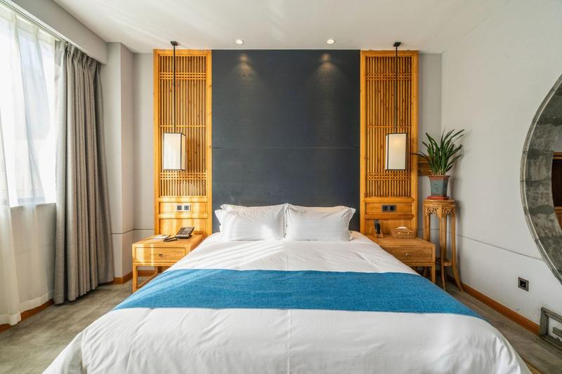 酒店位于河南省新乡市,周围交通便利,生活配套齐全,外出购物、就餐方便,让您尽享新乡的“慢生活”。酒店采用新乡市智慧客房系统,通过数字化与网络化实现酒店数字信息化服务技术。设计将传统与现代,人文与自然融合,创造出具有独特东方文化魅力的审美情趣,打造集客房、茶餐、养生、会议于一体的园林式文化酒店,五十余间新中式豪华房套房布局独特,设施齐全,每一个细节都彰显者格调与舒适。 【交通】 距新乡市客运汽车站:开车约20分钟(公交39路,约38分钟;公交7路,约49分钟等) 距新乡火车站:开车约20分钟(公交39路,约41分钟;公交48路,约51分钟等) 距新乡高铁站:开车约23分钟(公交9路,53分钟;公交191路,1小时等) 距新乡东站:开车约7分钟(公交801路,约23分钟;公交25路,26分钟;公交23路,27分钟等) 距新乡市人民政府:开车约17分钟(公交22路,约44分钟;公交192,39分钟等) 【酒店周边】 景点:启明社区文化广场、秋冬社区文化广场、乐水公园、以及新乡市人民公园等多个公园广场活动点。 美食:彭厨、57小龙虾、新乡老字号葛记红焖羊肉以及新乡融味餐厅等多种美食商家。 【酒店设施】 酒店内设有中餐厅、茶室等多套配套设施,集商务、旅游、度假休闲为一体。为顾客提供24小时前台、免费行李寄存、管家服务以及叫醒服务。 酒店设备配套完善,房间采用多芬高品质的浴室洗护用品、卫生间配备智能恒温马桶、高品质的神宝床垫配备锐斯床上用品、以及房间内所有设备均为声控操作;公共区域配有前台贵重物品保险柜、投影设备、茶室、熨烫服务以及高速无线网络全覆盖等; 酒店设有专门的功能区——雅韵知音,在这里来自四海的宾朋可以交流学术、品鉴茶艺,也可以举办读书会等各类沙龙;无论是去亲水露台品茗畅谈还是到禅心书院静心养性,亦或是伴着花香徜徉花海,酒店都是您不二的选择。 【特色服务】 酒店园林可提供中式婚礼拍照场地、汉服拍照场地、网红打卡房间以及婚房等多种特色服务及房间,园内设有可容纳200-300人的户外婚礼大草坪供顾客使用。