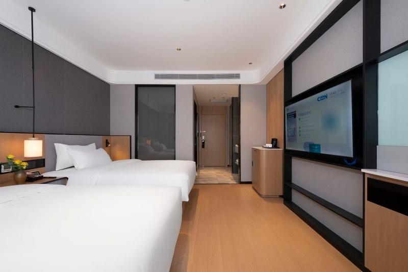 酒店隶属尚美集团旗下高端商务酒店品牌,位于河南省新乡市高新区牧野大道创客公园里G2号楼,毗邻宝龙广场商业中心与丰华街小吃美食街;周围有新乡科技学院与新乡医学院,新乡市第三附属医院均在酒店附近。离酒店近的公交车25l路/l39路/29路,步行前往约2分钟,驾车前往新乡高铁东站、新乡汽车客运东站约20分钟,想去新乡宝泉秘境、八里沟以及云台山的朋友从酒店过去约50分钟即达,交通十分便利;酒店周边有金盛百货购物中心,满足您在外吃喝玩乐购的需求。 酒店提供停车位70余个,豪华商务车城区接送,房间设计以江南婉约风格为主色调,光纤专线接入,WIFI全覆盖;所有房间都配备有AI语音智能“小爱小爱,打开窗帘”;并且拥有智能机器人房间送物的智能服务,出来住酒店好的床品真的是太重要了,酒店床品使用布草十大品牌之一的康乃馨布草,康乃馨更专注酒店布草,并致力于与酒店共同打造高雅舒适的睡眠环境,为更多的商旅人士带来与众不同的奢华体验,入身丝滑,健康舒适。客房床垫使用的是享誉全球的国潮床垫品牌-喜临门,联手定制带给您优质的深度睡眠体验。智能恒温+5秒出热水系统,让您有一个酣畅淋漓的沐浴感受。