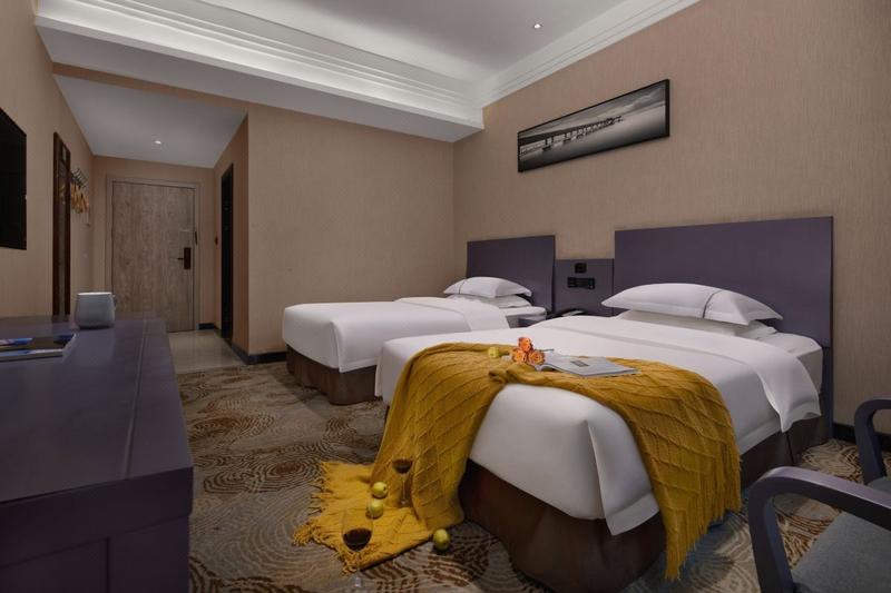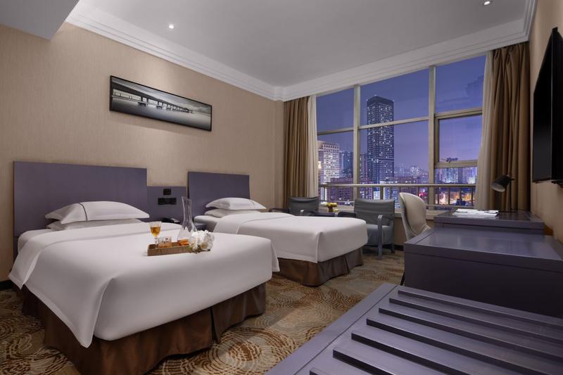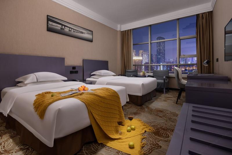 酒店位于金穗大道与解放路交叉口,紧邻新乡市中心医院,是一所综合性三级甲等医院,附近有知名商场胖东来,新玛特,百货大楼,地理位置优越,交通便利,环境优美。 酒店拥有布置温馨的客房百余间,客房20-29平方米,客房配有:超大55寸屏液晶电视,电动窗帘,智能化灯光控制,四方青功夫茶,知名品牌床上用品,高档护肤品,独立淋浴间,天然乳胶枕,原生态荞麦枕,酒店配有特色管家服务,欢迎水果,贴心的夜床服务,自助洗衣服务,免费健身服务,免费车站接送服务(高铁南站除外),立志打造新乡市性价比高酒店之一。