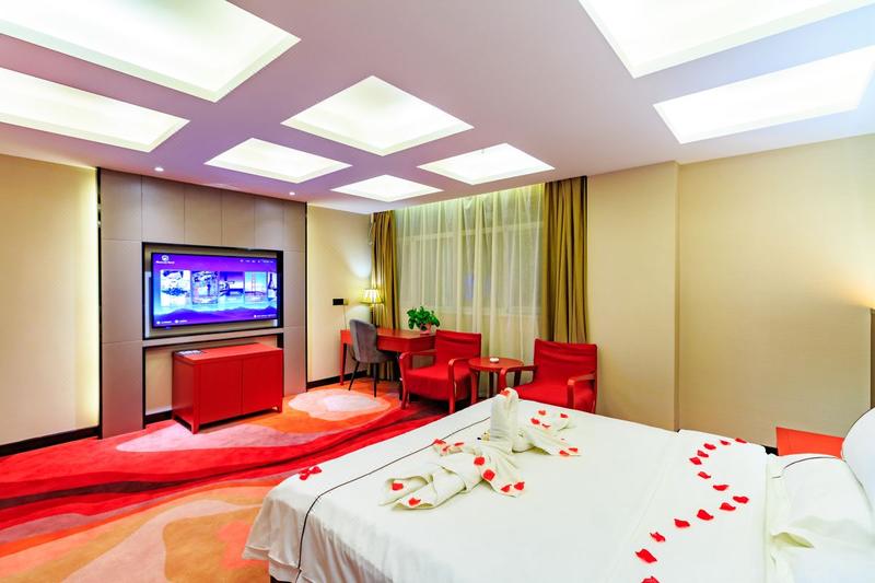 酒店位于金穗大道与解放路交叉口,紧邻新乡市中心医院,是一所综合性三级甲等医院,附近有知名商场胖东来,新玛特,百货大楼,地理位置优越,交通便利,环境优美。 酒店拥有布置温馨的客房百余间,客房20-29平方米,客房配有:超大55寸屏液晶电视,电动窗帘,智能化灯光控制,四方青功夫茶,知名品牌床上用品,高档护肤品,独立淋浴间,天然乳胶枕,原生态荞麦枕,酒店配有特色管家服务,欢迎水果,贴心的夜床服务,自助洗衣服务,免费健身服务,免费车站接送服务(高铁南站除外),立志打造新乡市性价比高酒店之一。