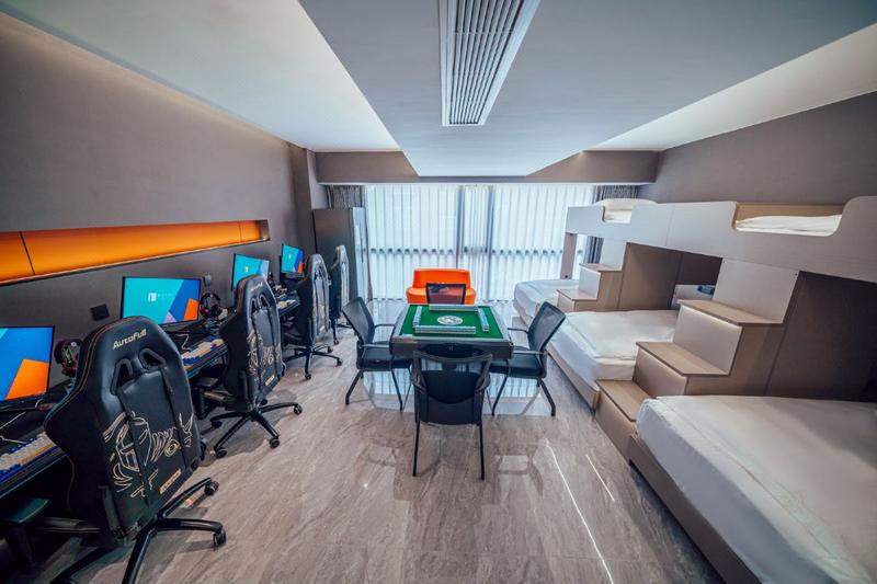 酒店介绍:本店隶属于北京爱竞酒店管理有限公司,品牌围绕电竞生活,以酒店为依托,形成电竞酒店+赛事运营+新游戏研发+线上商城+游戏周边的电竞生活快乐空间。 交通便利:酒店位于焦作市中心,解放区人民路丽景云尚2号楼2单元2A层。周边有王府井商场,人民广场,天河公园游乐场,万达广场,龙源湖科技馆。 出行方便:距离焦作站约10分钟。焦作西站约30分钟。 酒店配套:酒店拥有舒适客房,大床房到、双床房六人间房型均可免租电竞宾客的各种喜好。房间采用零压床垫,给宾客们带来更好的入住体验。酒店使用品牌中央空调、全屋小度智能客控、65寸挂壁电视机、双开门大冰箱提供多种零食饮料,是您游戏之余补充能量的好选择 电竞设备:电脑配置i7处理器+4060显卡,更有2K 240HZ分辨率的27寸专业电竞显示屏,4060显卡,32G内存,CPU i7/12700F,罗技402和达尔优牧马人五代双鼠标,达尔优光轴机械键盘。只为您提供一个舒适的游戏环境。