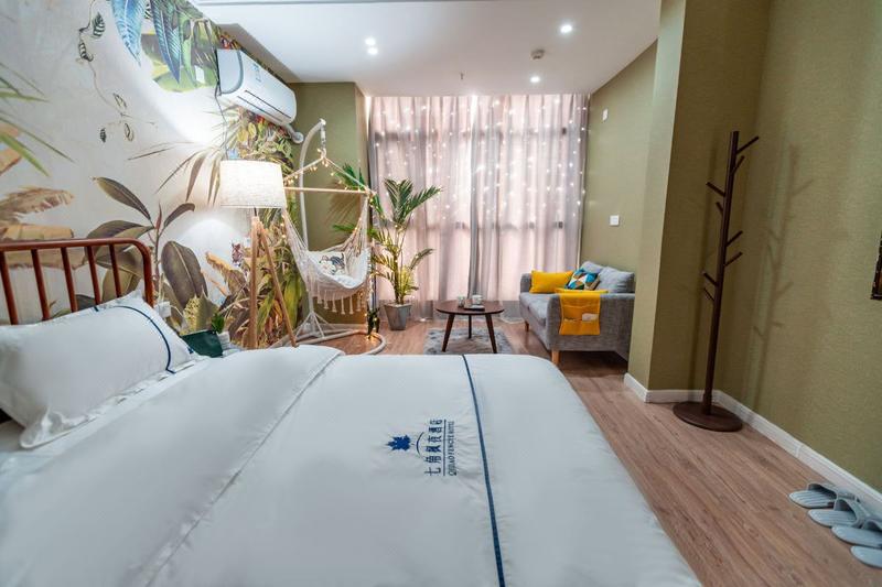 本店位于焦作市示范区世纪路与迎宾路交叉口正大国贸中心南门6号公寓楼1楼大厅,地处河南省高新区行政中轴核心区域,毗邻河南理工大学、总部新城、客运总站、市工商局、新区行政服务大厅。(位置) 酒店有各类客房。房间演绎现代生活的美学特质,注重智能化与人性化的结合,打造舒适性与便捷性的居住空间,全落地窗设计,尽览繁华焦作美景。(酒店设施) 交通:酒店距离客运总站仅8分钟车程,距离焦作火车站15分钟车程。 景点:云台山、影视城、龙源湖公园、体育馆。 美食:步行5分钟到东小巷美食一条街,香港城美食街; 购物:万达购物广场,王府井购物广场、丹尼斯购物广场 七角枫夜酒店——为心中有热爱、敢于追热爱的新青年打造高性价比的旅途空间,让我们活出热爱,以热爱创未来……