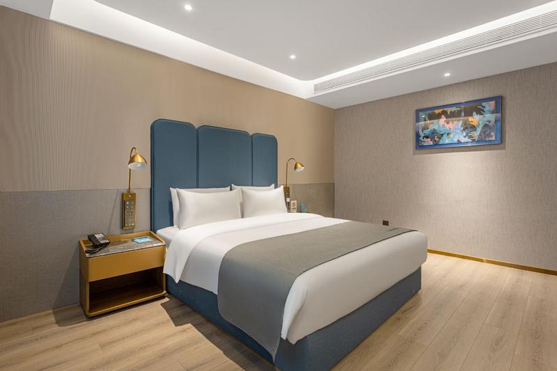 此酒店为六象集团旗下中高端艺术商旅酒店品牌,酒店周边配套上亿广场等综合休闲娱乐购物场所,地理位置优越交通便利。 酒店豪华艺术客房,健身房、餐厅、中小型及多功能会议室等配套设施一应俱全。 酒店整体设计布局用兰欧特色的艺术血统结合酒店美学布局,创造出时尚又富有空间层次的独特美感。欧式简洁大气软装,遵循美感与实用相得益彰原则,即体现大都会休闲时尚感,又蕴含独特的艺术美学。