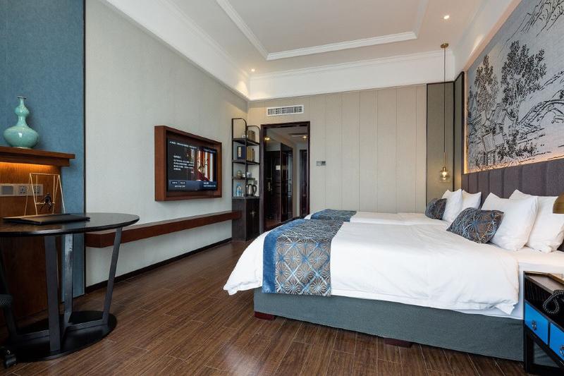 酒店位于建设路与古槐街交汇处,是具有三国文化特色主题的酒店,与三国名胜春秋楼景区、曹魏古城、曹丞相府景区、霸陵桥景区咫尺之遥。 酒店内部装修温馨典雅,“新中式”客房打破传统功能布局,卫生间、淋浴间、洗漱区干湿分离,室内设计既有时尚元素,又有传统文化、地方特色。此外,单人间及套房内配备较新电脑设备,全自动冲水马桶、整体浴房热带雨林花洒;采用纯羽绒系列床上用品、荞面羽绒双面枕,以及30cm厚面包记忆棉床垫,提高您的睡眠质量。 中餐宴会厅提供精品淮扬菜、经典豫菜及各种特色佳肴;多功能宴会大厅音响配置,超大LED显示屏幕;自助餐厅现场制作煎扒类、烧烤类食品和部分特色面食;特色休闲区是休闲小憩、商务洽谈的完美之地。 8个大小不同、功能各异会议室有先进的设备、周到的服务,满足不同类型会议需要。此外,健身房、商务中心、美容美发等配套设施的尽善尽美。