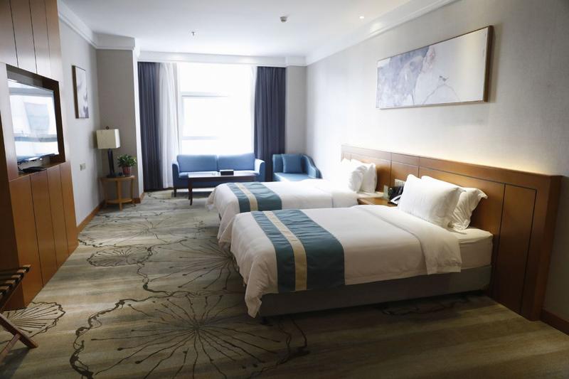 酒店地处许昌CBD商务中心,位于许昌芙蓉大道与永兴路相交处芙蓉商务电子产业园内,与游园、湖泊相邻。 房间内配有无线网络、空气净化器,酒店还配有豪华餐厅包厢、自动餐厅、免费地下停车场。酒店无论是住宿、宴会都是您的理想之选。同时也是示范区一家中档酒店,近京港澳高速许昌北出口、高铁东站、高铁北站、芙蓉商务区、示范区政府、建安区政府、中央公园、芙蓉湖、北海公园等,周边环境优雅安逸,让您体验别样的世外桃源。酒店诚心恭候您的光临!