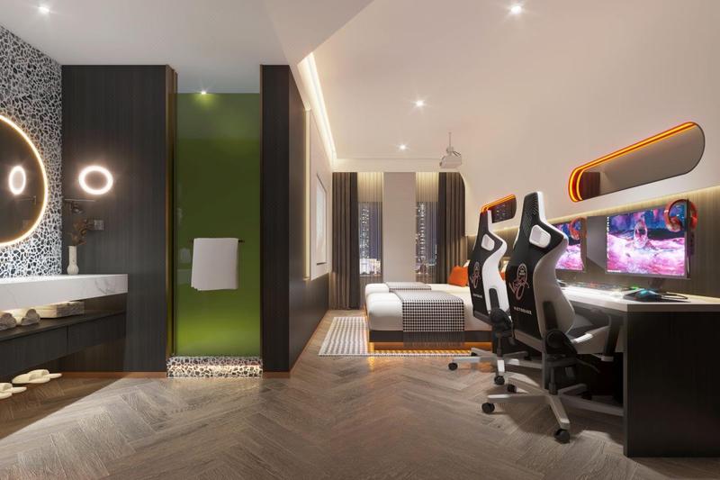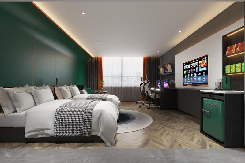 北斗电竞酒店(胖东来天使城店)是一家独具创意及个性化的精品艺术酒店,酒店设计特邀名师主笔,风尚至雅、艺术氛围浓厚。北斗网络主题酒店的设计与施工都巧妙地融合了时尚、流行、科技等多种元素,同时结合高科技设施及与网吧匹配的氛围设备,打造出各种风格鲜明的主题房间。酒店不仅体现浪漫唯美、时尚高雅、智慧便捷等特色,同时也将依据市场反馈,提供更加具体、细节的场景,使每一位顾客都能在“北斗”找到惊喜的体验,留下难忘的回忆。