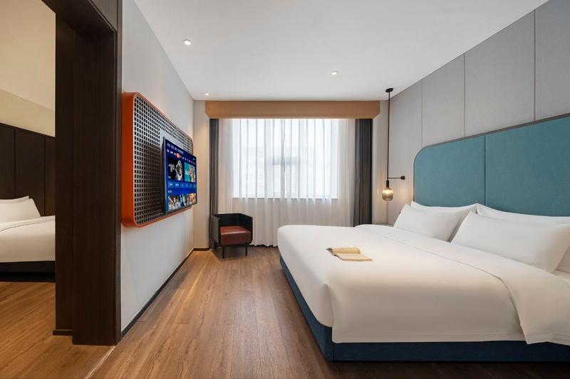 酒店靠近长葛宇龙广场、长葛市汽车站、长葛市人民医院,临近妇女儿童医院,周围有友谊时代广场、一峰城市广场、万客苑商贸城等,距离益民步行街约500米。 酒店设有健身房、洗衣房、商务洽谈室、茶室、供客人使用。床垫均为乳胶床垫、房间更是多样,拥有2.4米的舒适大床房等。早餐丰富多样,近40余种种类供客人选择。让您的旅途舒适无忧。