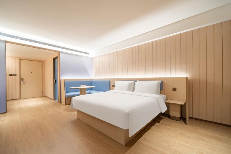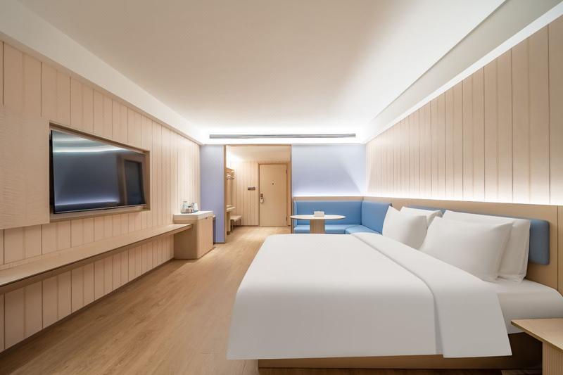 汉庭全新3.51版本 采用全新设计语言,结合浅蓝、浅粉等明快配色,辅以流畅线条,呈现出轻松、愉悦之感,更传递出一种理性、优雅的品质生活态度。六大人性化自助服务场景,涵盖30s入住、机器人送物、24hr洗衣等,为客人提供更加高效、舒适的住宿体验。摊点事自助早餐呈现国民本味,明档面点暖心暖胃;客用品、家具舒适度再升级,符合人体工学的同时注入环保、科技理念。汉庭3.51致力于提供高颜值、好而不贵的国民酒店产品,助您深度睡眠,“静”享舒心生活。