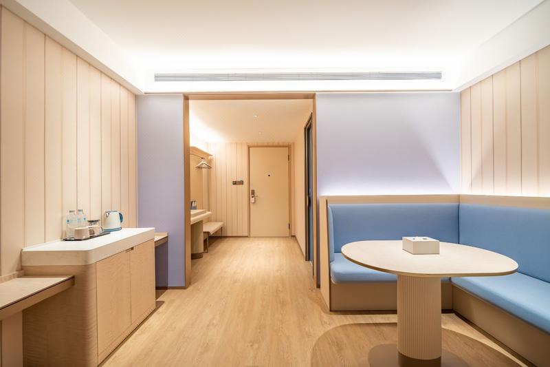 汉庭全新3.51版本 采用全新设计语言,结合浅蓝、浅粉等明快配色,辅以流畅线条,呈现出轻松、愉悦之感,更传递出一种理性、优雅的品质生活态度。六大人性化自助服务场景,涵盖30s入住、机器人送物、24hr洗衣等,为客人提供更加高效、舒适的住宿体验。摊点事自助早餐呈现国民本味,明档面点暖心暖胃;客用品、家具舒适度再升级,符合人体工学的同时注入环保、科技理念。汉庭3.51致力于提供高颜值、好而不贵的国民酒店产品,助您深度睡眠,“静”享舒心生活。