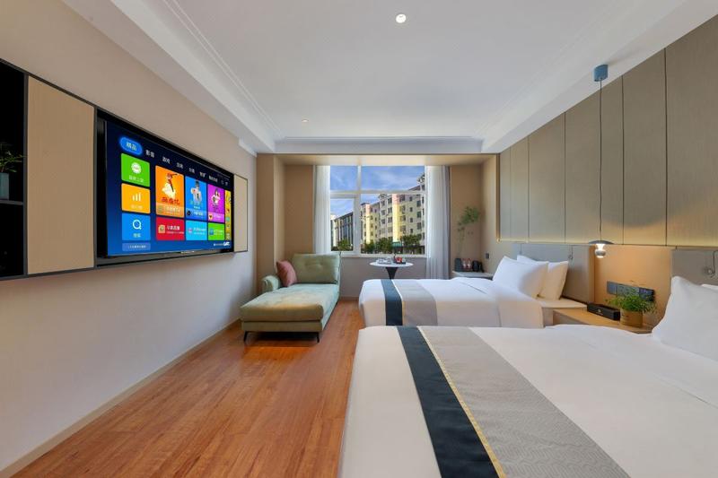 本店是新中高端酒店,位于大同路与府东路交叉口西北角。 新的酒店、新的品牌、房间内全智能客控、品牌左右沙发、慕思床垫舒睡体验店。 酒店是一家以 餐饮 会议 休闲 娱乐为一体的综合性酒店 酒店内设 早餐厅、洗衣房、商务休闲区、健身房、台球室、会议室等;位置毗邻市政府办事大厅,距离夏禹公园、禹州市体育公园、禹州市特色商业步行街步行十分钟路程、为您旅途出行提供便利;健康格调的餐厅提供丰富多样的本地美食。