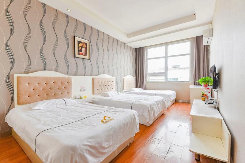 酒店位于漯河市人民路与嵩山路交叉口向东50米路南(漯河市电视台东南角),紧邻源汇区法院和漯河市电视台,东临丹尼斯大型购物商场和新天地商业街,西临体育场、漯河市职业技术学院和漯河医学高等专科学校,北临灯具市场、机电市场,距离西高铁站15分钟车程,距离火车站、汽车中心站10分钟车程。7路、26路、66路、20路、28路、17路、69路、68路、103路公交车门前经过,地理位置优越,沙澧河公园环绕,周边环境优雅,交通十分便利。酒店拥有标准间、大床房、时尚主题房和套房,以精致时尚的环境设计、温馨舒适的客房设施、高清的液晶电视、便捷高效的商务配套设施、无线WIFI覆盖、美味丰盛的自助早餐、恰到好处的热情服务,带领您体验前所未有的旅行新乐趣。酒店以简洁时尚的风格,让您在浮躁的城市里觅得一份安宁!点滴之处,尽显人文关怀,是您商务及旅游住宿的上佳选择。 我们将以百分百的热诚期待您的下榻!