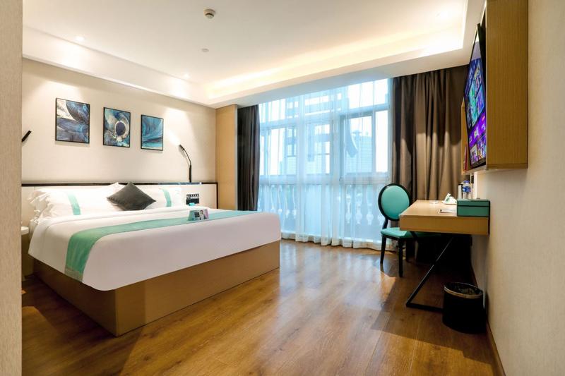 酒店地处奥特莱斯商圈内,位于漯河高铁西站正对面,步行即可到达。距漯河市市中心约20分钟车程,交通便利。 酒店为每位入住的客人提供养颜茶、冷热毛巾、甜美的糖果,为您洗去旅途的疲劳;客房采用简约现代风格,呈现舒逸、静谧的格调,房间里配设齐全,梦百合零压床垫和优质的床品,100M高速光纤,且全WIFI覆盖。