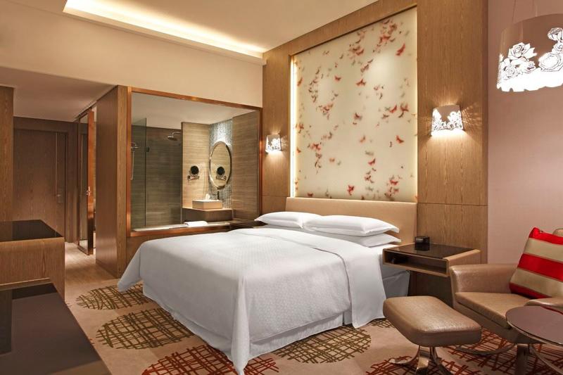 漯河建业福朋喜来登酒店坐落于市区金融中心,与漯河市科教文化中心隔路相望,距离行政服务区约3分钟车程,出行便利。 酒店外观采用法式 ArtDeco 风格的建筑设计,既古朴典雅又时尚现代,两百余间拥有现代化设施的宽敞客房体现您钟爱的格调,24小时新风循环系统以及高速无线上网接入,智能控制窗帘,给沐浴在清新空间的您带来无限欢喜。房内的淋浴空间采用干湿分离设计,均配有雨淋花洒和浴缸;还可拥入福朋特色睡床上尽享一夜甜美酣眠。如果您需处理业务,酒店还可提供宽敞的办公空间。 疲备的工作结束后,您可在25米室内恒温泳池享受激动人心的视觉冲击效果,或在设施一流的健身俱乐部挥洒汗水的同时,饱览酒店内庭院15000平米欧陆风尚婚礼花园美景。 酒店的大堂吧提供福朋喜来登酒店特有的精酿啤酒和特色甜品。您亦可步入设计时尚的宜客乐全日餐厅享受酒店供应各式的国际和当地美食;15个豪华装修的中餐厅聚味轩,提供精致纯正的粤菜、淮扬菜、川菜及本地特式经典豫菜。 酒店还拥有1108平方米灵活的会议和宴会空间,可为您举办各种盛大活动提供所需的空间。