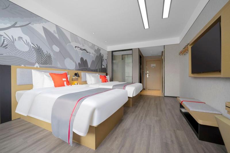 本店距漯河神州鸟园不远 . 酒店整体装饰简约时尚,客房舒适整洁、色调柔和;设有高级大床房,休闲大床房,风情圆床房,高级双床房,套房等多种房型,房内配置分体空调、24小时热水、独立卫浴等设施,完善齐全。酒店附设餐厅.洗衣房.健身房.停车场,服务热情细致,使宾客体验舒适与愉悦,享一夜酣眠。8:00-22:00提供接送高铁站服务