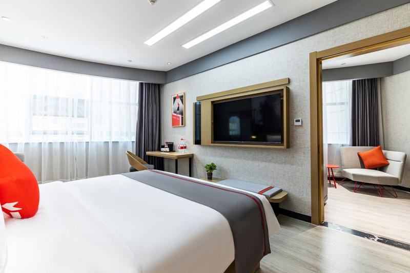 本店距漯河神州鸟园不远 . 酒店整体装饰简约时尚,客房舒适整洁、色调柔和;设有高级大床房,休闲大床房,风情圆床房,高级双床房,套房等多种房型,房内配置分体空调、24小时热水、独立卫浴等设施,完善齐全。酒店附设餐厅.洗衣房.健身房.停车场,服务热情细致,使宾客体验舒适与愉悦,享一夜酣眠。8:00-22:00提供接送高铁站服务