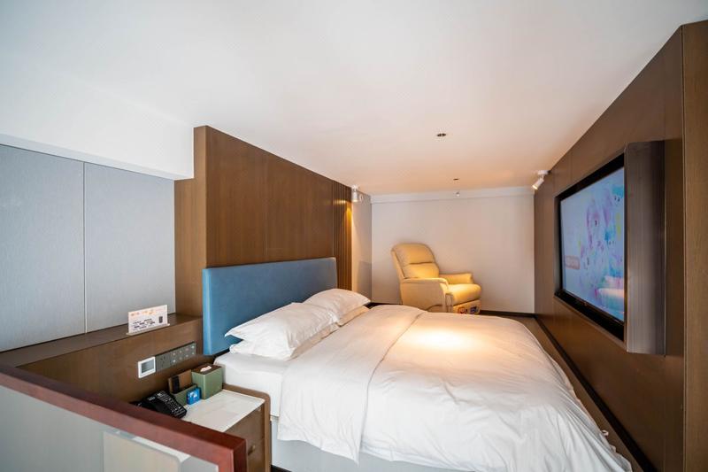 【酒店位置】坐落于漯河市郾城区会展中心黄山路与岷江路交叉口向西;与漯河会展中心一路之隔,西邻漯河食品职业学院、漯河五高、南临漯河日报社、丹尼斯综合商超、沙北幸福渠,东临漯河高中北校区、北邻MOCO美食街、漯河市人民检察院、中储棉漯河仓库。 【酒店设施】全智能小度语音操控,无需动手便可操控房间电视、灯光、空调、窗帘等设施。入住押金自动返、退房无需等待、随住随走。酒店客房采用现代轻奢装修风格,房间配备有办公桌,茶桌,茶具,正山小种茶叶/雀巢挂耳咖啡免费饮用,是您喝茶会友的不错选择! 【停车便捷】酒店有地上、地下停车场可免费停放。 【周边交通】距京港澳高速漯河北出口10分钟车程,漯河高铁西站13分钟车程,漯河火车站及市汽车中心站11分钟车程。 【周边美食】小白蒸鲜馆、千寻料理、广顺兴、那故事餐厅、悦伴融合餐厅、南水岸餐厅、淞江美食城小夜市等 【休闲娱乐】盛世名人KTV、紫晶城KTV、动岚梦工厂健身房、熊猫酒吧、金水桶浴足、玉洁足浴...... 【商超购物】楼下24小时便利店。丹尼斯综合商超满足您日常购物需求:水果、百货、服饰、电玩、特色小吃、电影等一应俱全 我们一直坚持为客人提供高品质的服务与设施设备,一切以客人满意为追求,让离家在外的您得到悉心的呵护与关怀!