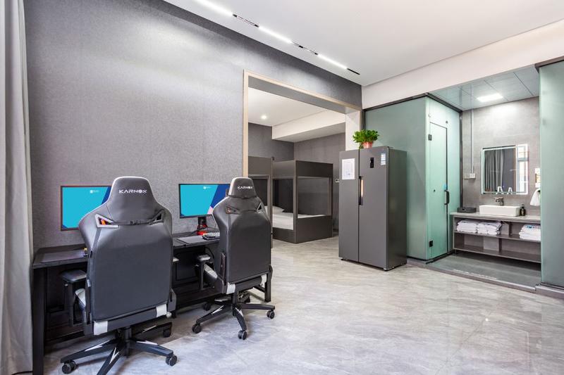 酒店秉属于隶属于北京爱竞酒店管理有限公司,品牌围绕电竞生活,以酒店为依托,形成电竞酒店+赛事运营+电竞陪玩+新游戏研发+线上商城+游戏周边的电党生活快乐空间。 酒店位于河南省漯河市黄河中路和交通北路交叉口附近,距离漯河西站,大约20分钟车程。 酒店交通便利,毗邻金沙滩公园,与沙河近在咫尺,周边商圈林立。不管是享用美食,商场购物,休闲放松,让您有多种选择。 洒店拥有电竞大床,双床和多人间,满足商务和电竞爱好者的各种需求。房间窗帘智能,只要呼唤“你好小乐,打开窗帘”,窗帘自动开启关闭。客房摆放双开门大冰箱,零食饮料种类丰高,是您游戏之余补充能量的理想选择。 酒店还为您提供入住欢迎茶水,糖果,洗漱化妆用品,入住期间只需联系24小时前台可为您解决一切烦恼。酒店提供停车,离店前告知前台即可。 我们致力于打造舒适快乐于一体的入住体验,高端的电脑配置。专业的保洁,贴心的服务,让您不仅能体验竞技游戏中的快乐,更能感受到家的温馨,是您商务出差,朋友聚会的理想之选。