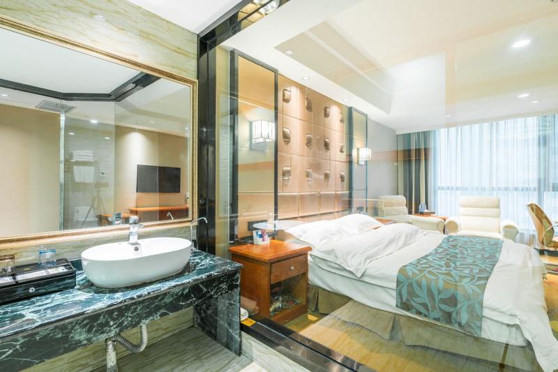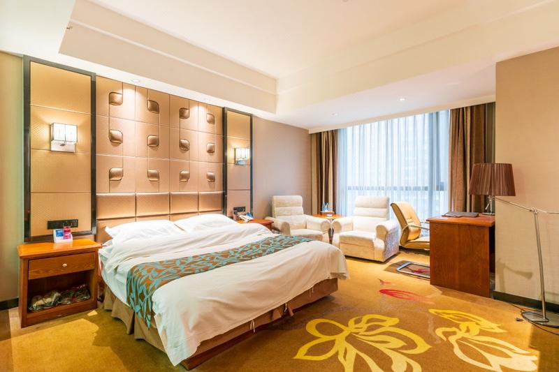 饭店位于临颍新城路与临颍大道交汇处,靠近县镇府。 酒店集住宿、餐饮、娱乐、洗浴为一体,拥有各类豪华舒适的客房,房内提供24小时热水、液晶电视、小冰箱、迷你吧等。 这里有3个功能齐全、设施一流的婚宴大厅,厅内有进口超清LED大屏幕、进口音响灯光设备,另有40余间豪华餐饮包间,可接待近千位来宾,还有豪华时尚的KTV包厢15余间。