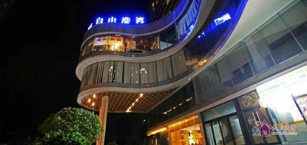 驿栈出门就是东西快速路上下匝道口,5分钟就可走到海边木栈道。观海平台亲临大海,也可去邮轮母港观光。