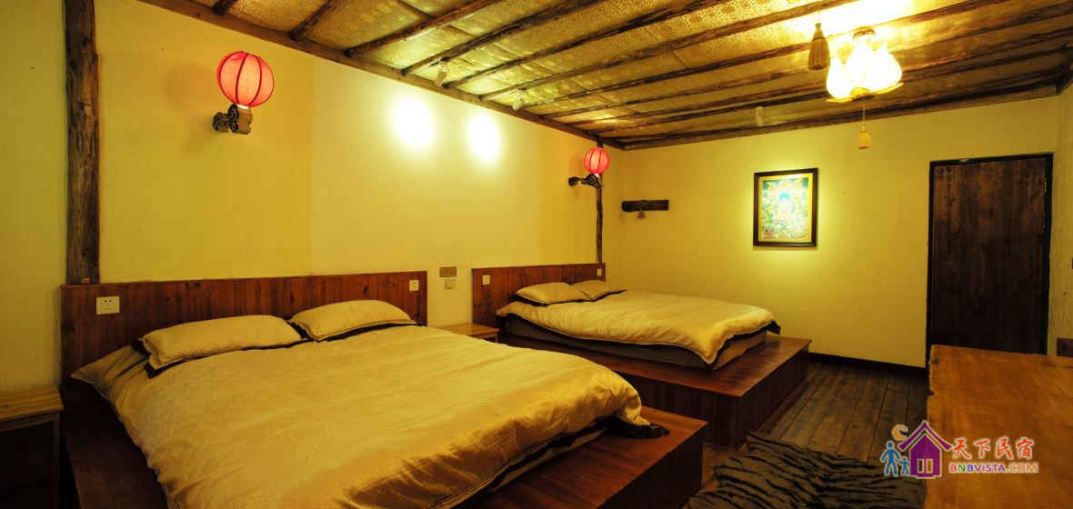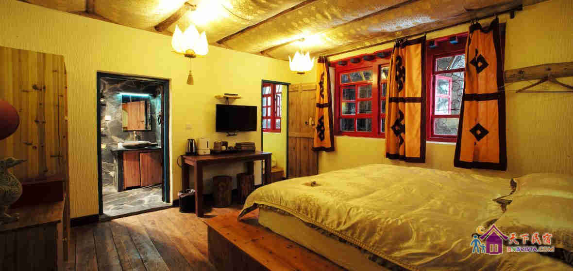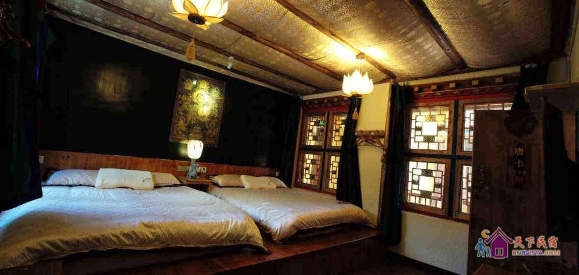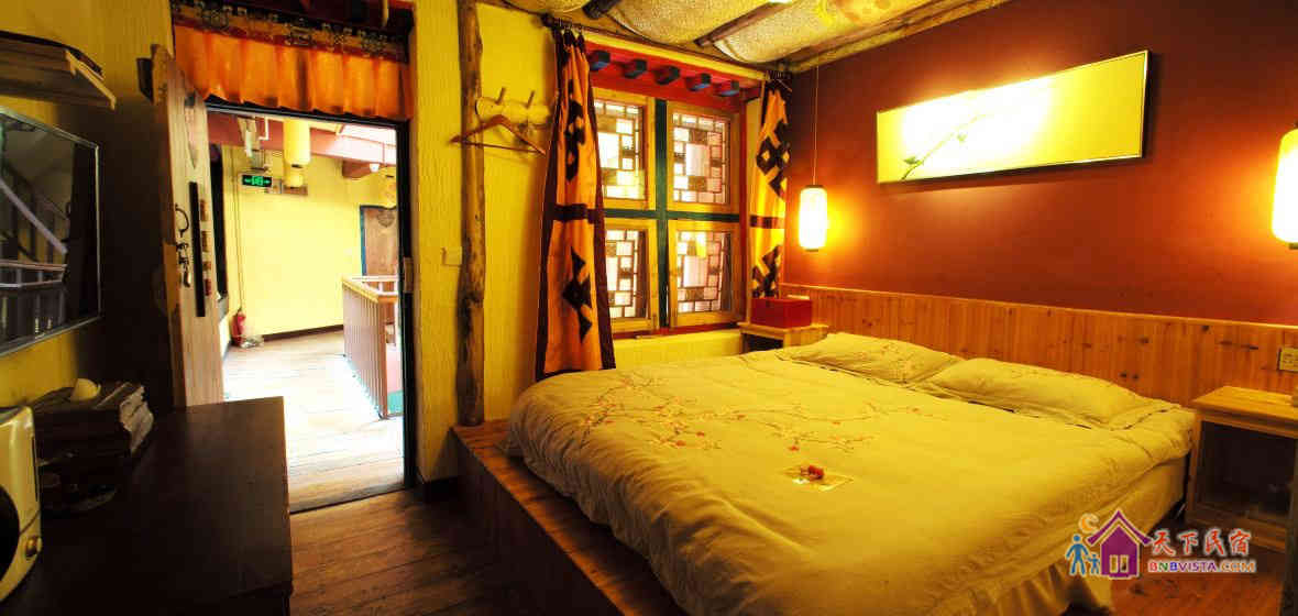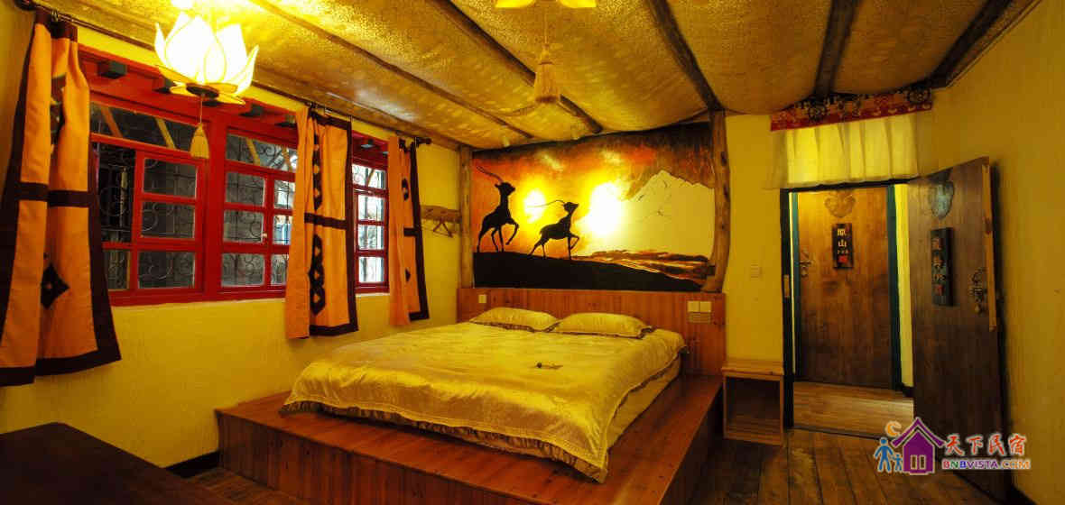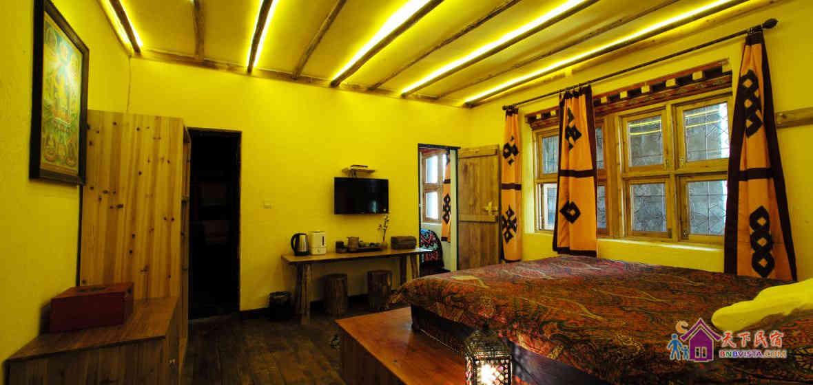 客栈房间不多,但每间房都做了藏式特色的主题设计。主色调选用最代表西藏的喇嘛红和暖黄色,无论你着装素雅亦或艳丽,在店内的上镜效果都非常出色并具有浓厚的民族特色。房内床铺采用高端纯棉贡缎,冬季提供暖气。